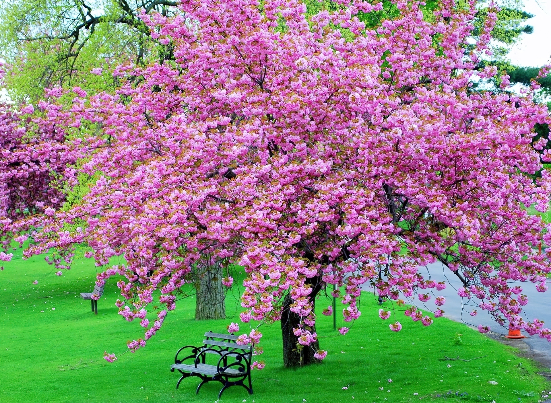 Edytor tapety: Kwitnące, Drzewo, Ławka