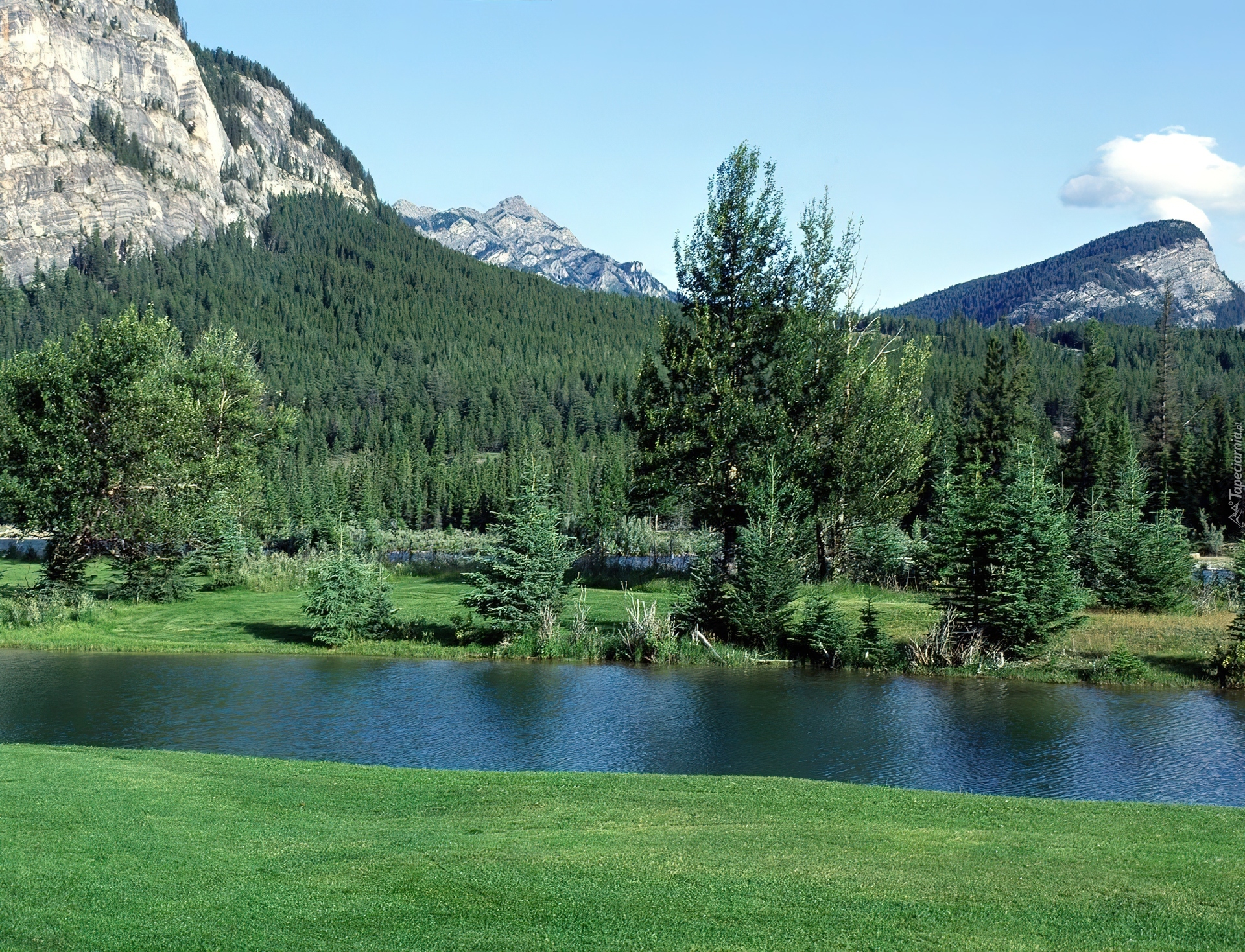 Edytor tapety: Kanada, Park Narodowy Banff, Góry, Las, Łąka, Woda