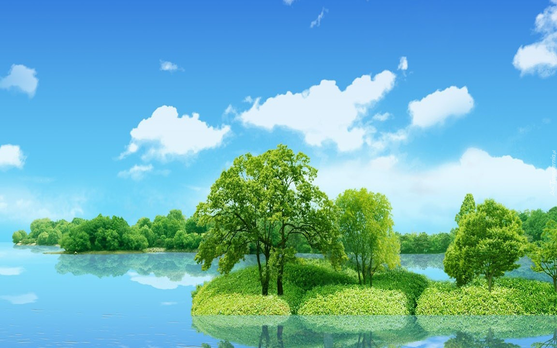 Edytor tapety: Jezioro, Drzewa, Chmurki