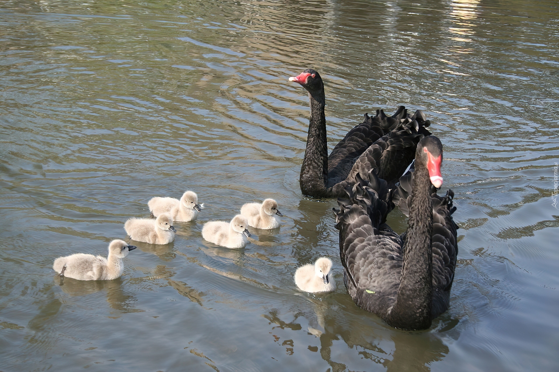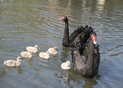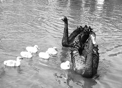 Edytor tapety: Dwa, Czarne, Łabędzie, Młode, Woda