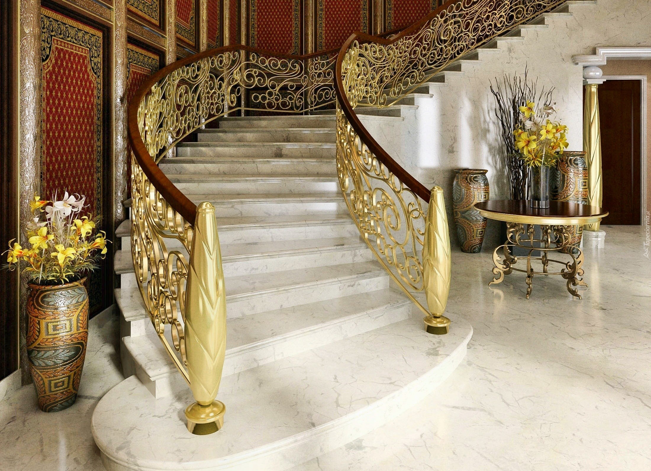 Edytor tapety: Dom, Hol, Schody, Złocone, Balustrady