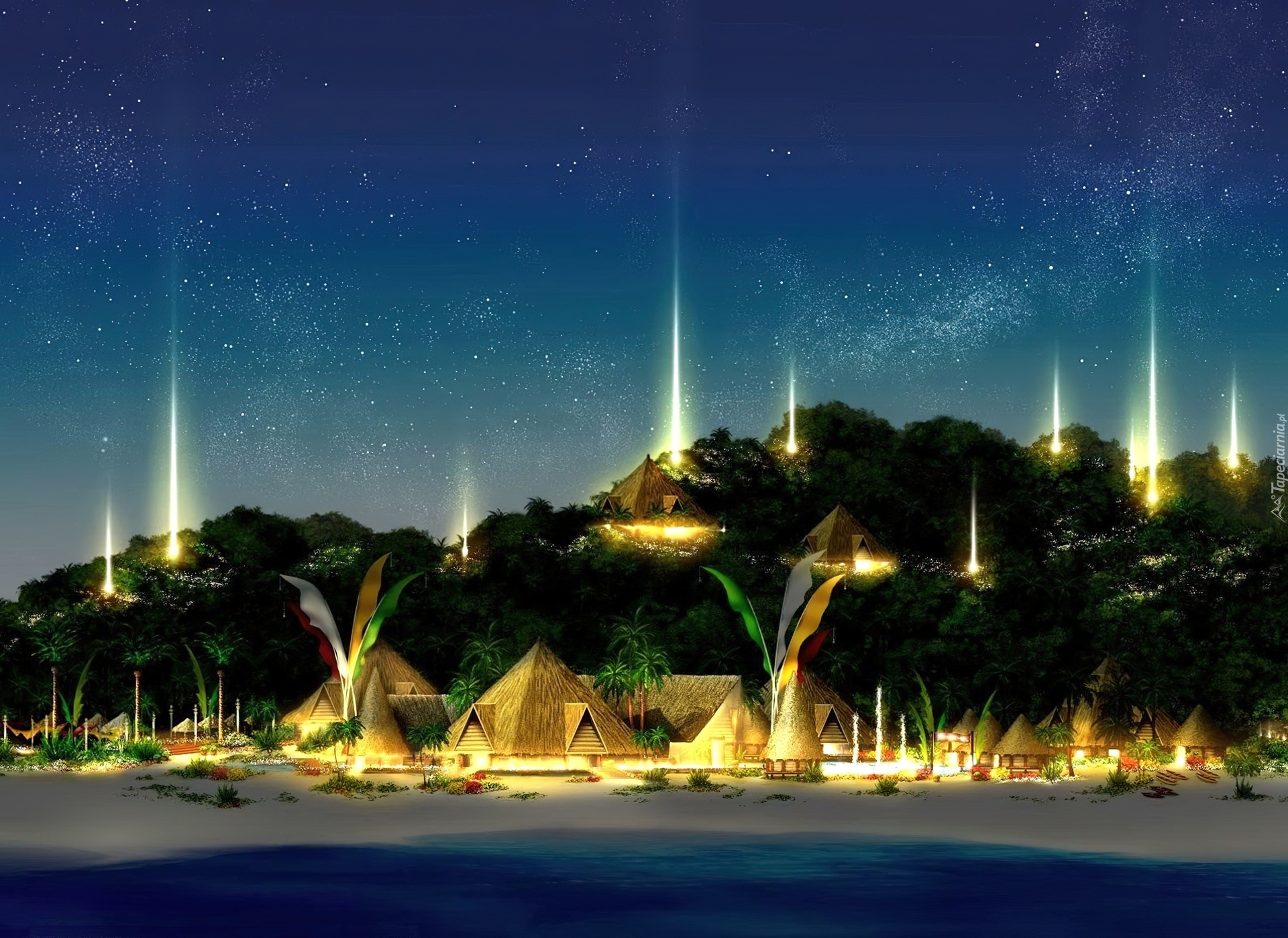 Edytor tapety: Grafika, Hotel, Plaża, Gwiazdy, Niebo