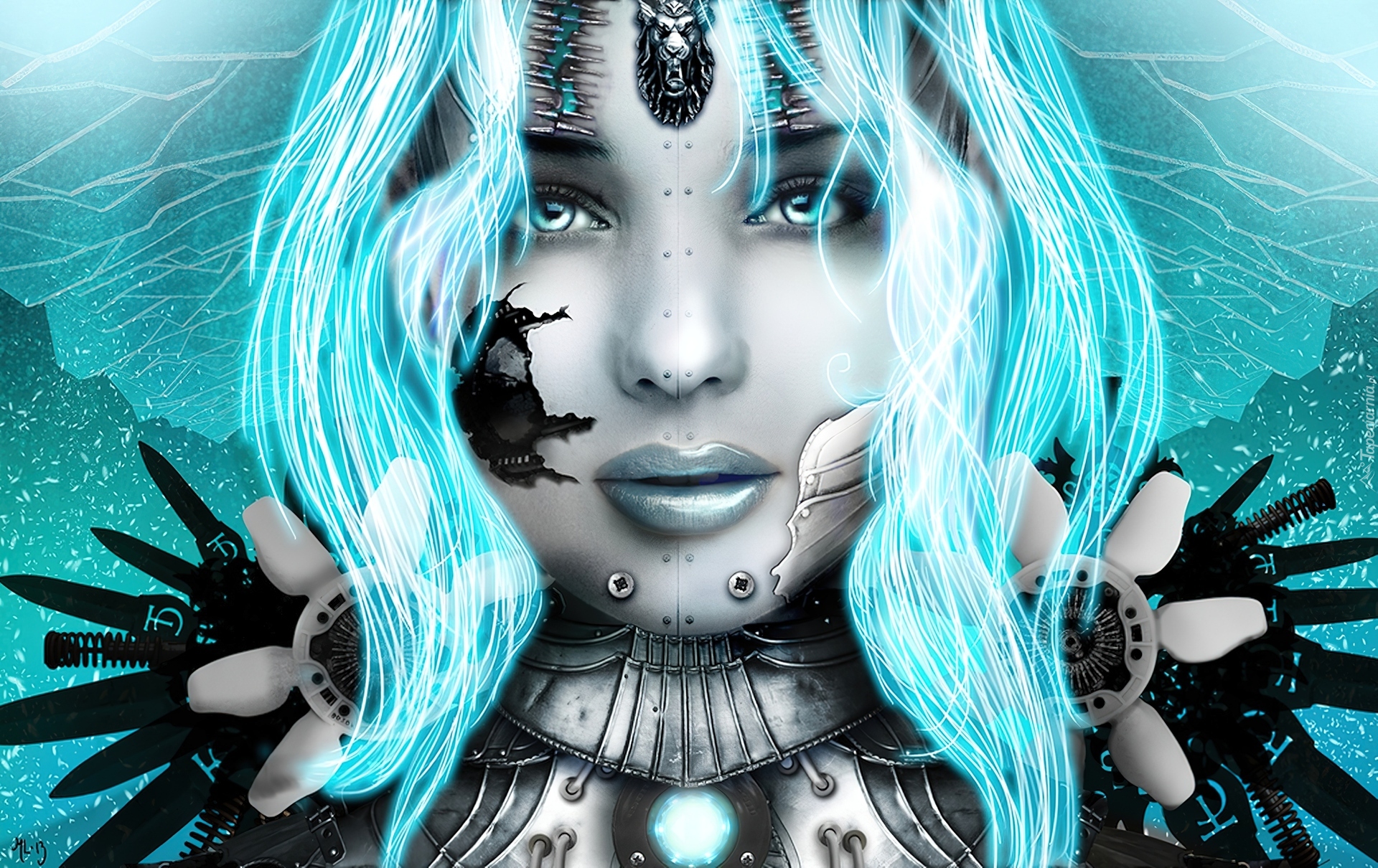 Edytor tapety: Kobieta, Cyborg, Niebieskie, Włosy