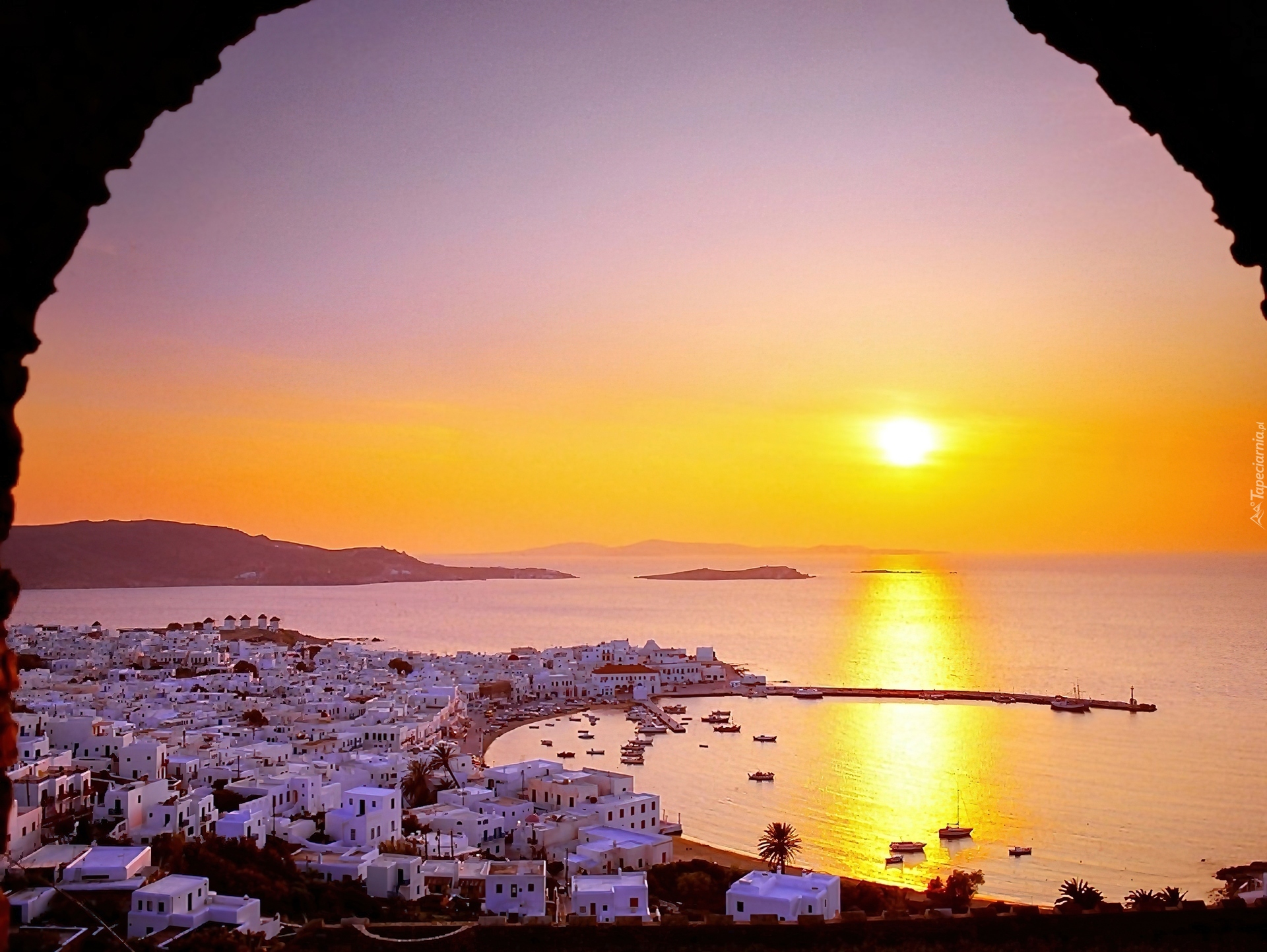 Edytor tapety: Morze, Egejskie, Cyklady, Zachód, Słońca