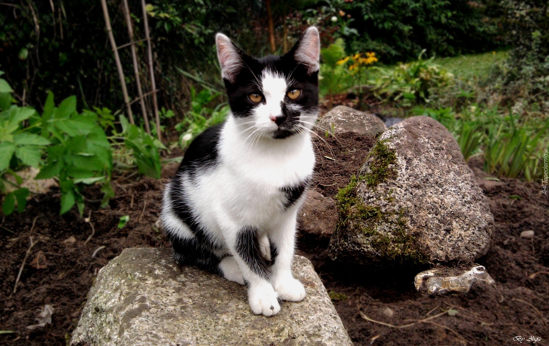 Edytor tapety: Łaciaty, Kotek, Kamienie