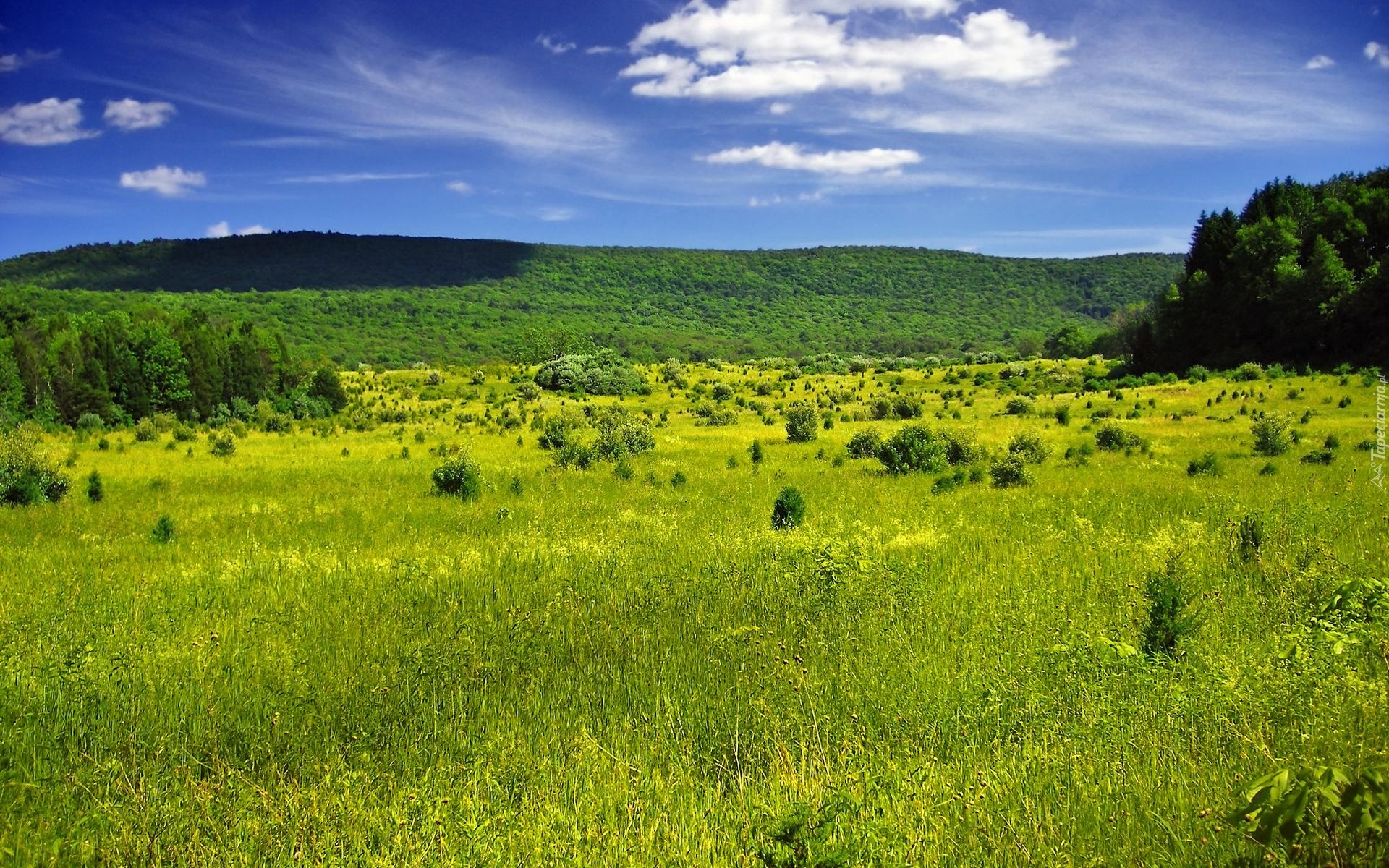 Edytor tapety: Łąka, Las, Góry, Chmury