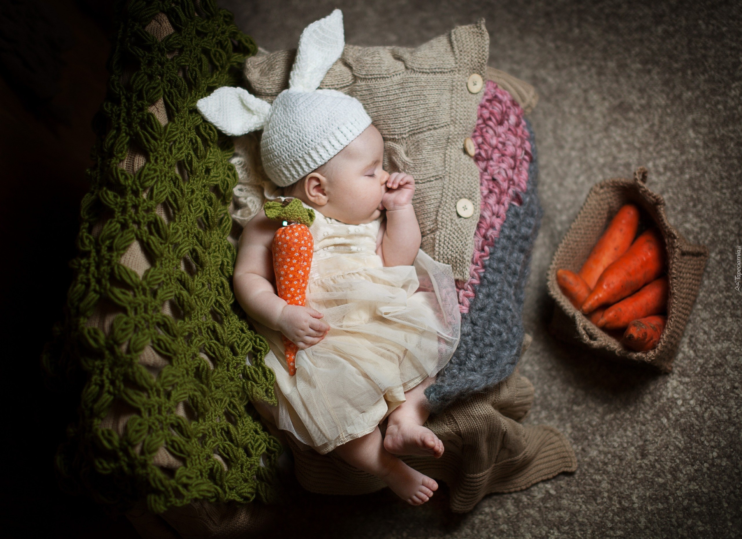 Edytor tapety: Dziewczynka, Króliczek, Marchewka