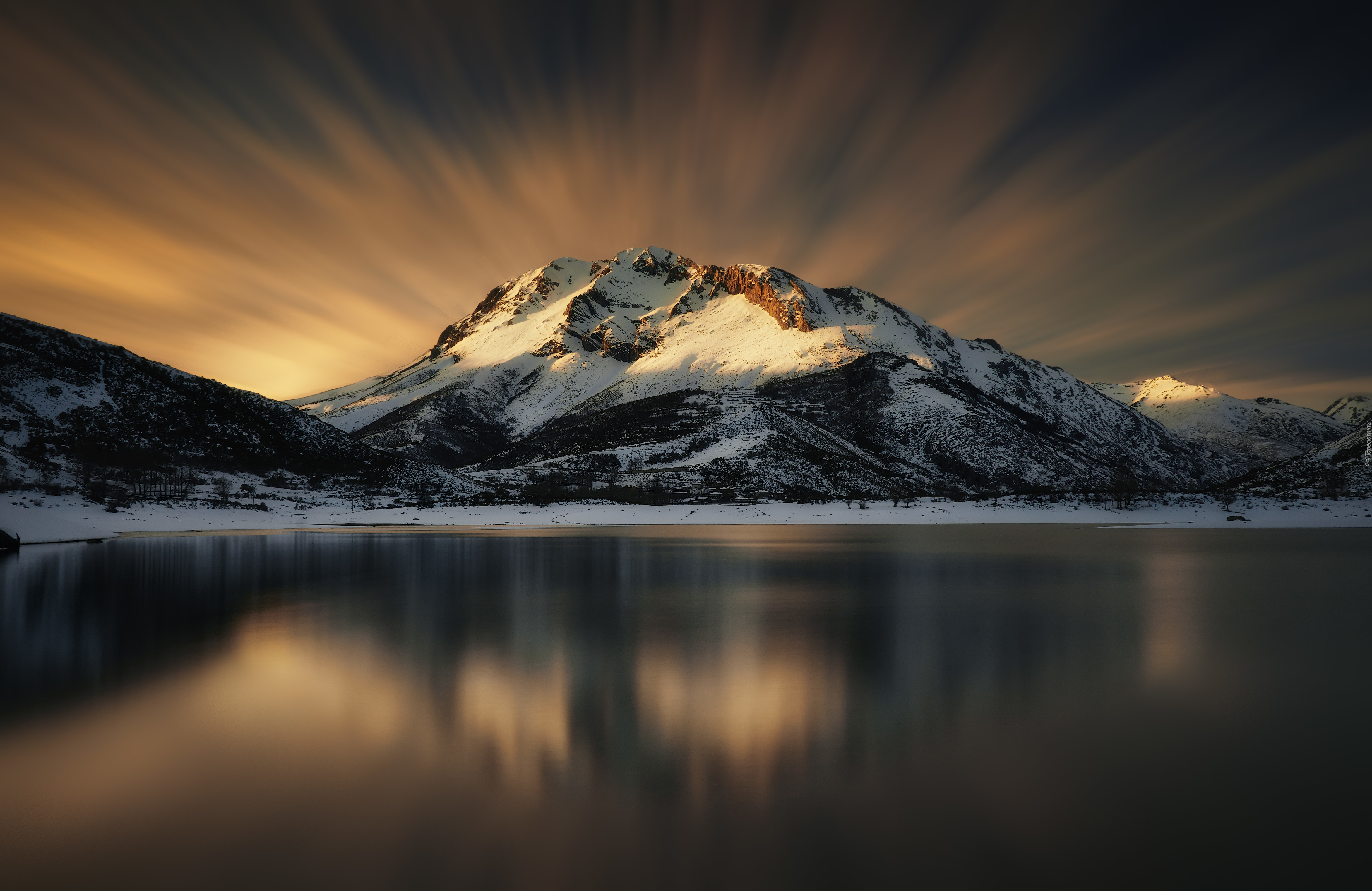 Edytor tapety: Góra, Morze, Promienie, Słońca