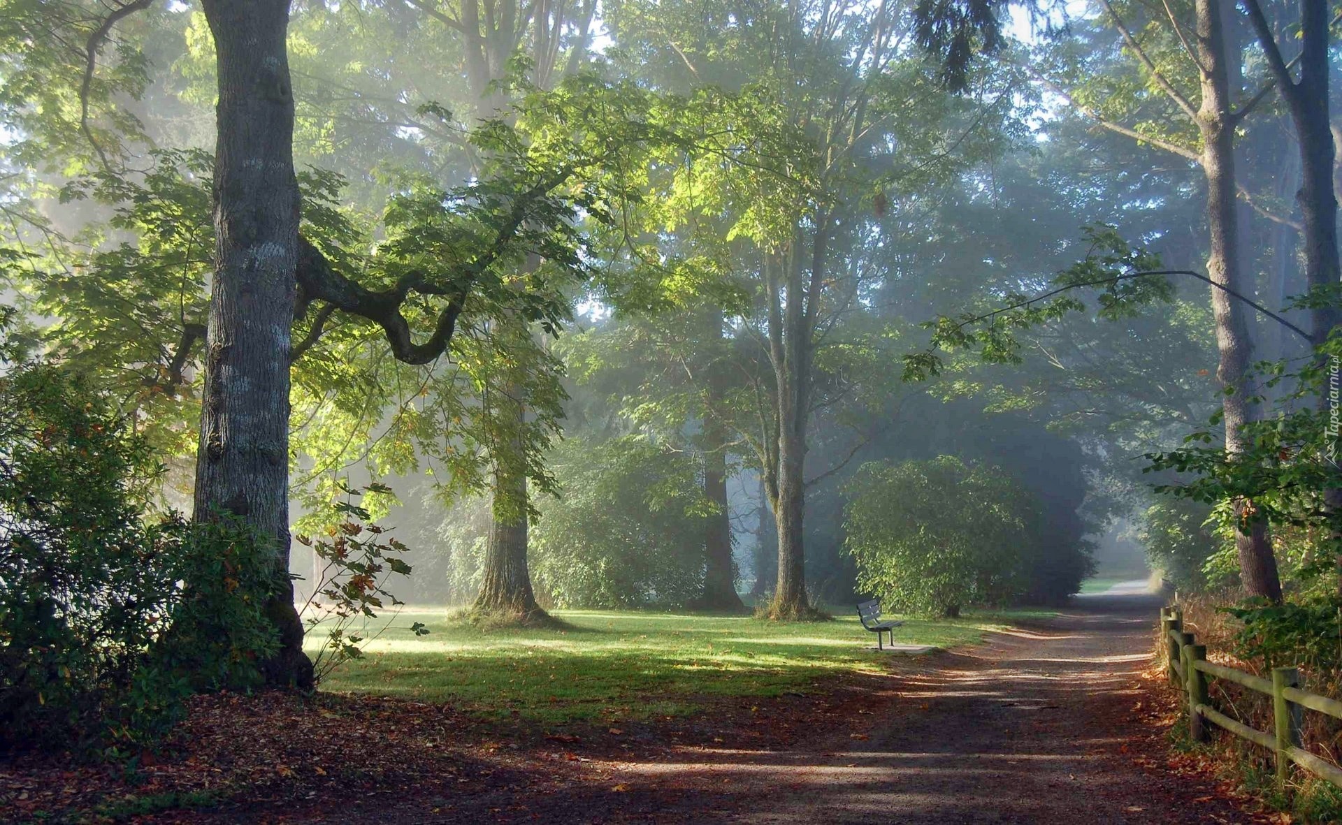 Edytor tapety: Park, Aleja, Poranek, Mgła