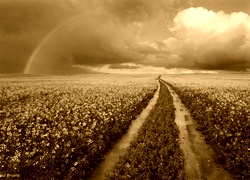 Edytor tapety: Pole, Rzepaku, Droga, Chmury, Tęcza