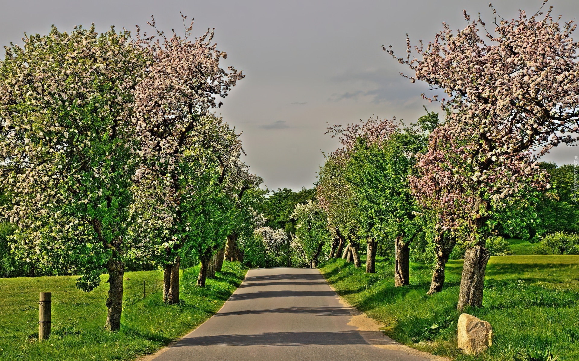 Edytor tapety: Aleja, Kwitnących, Drzew, Łąki