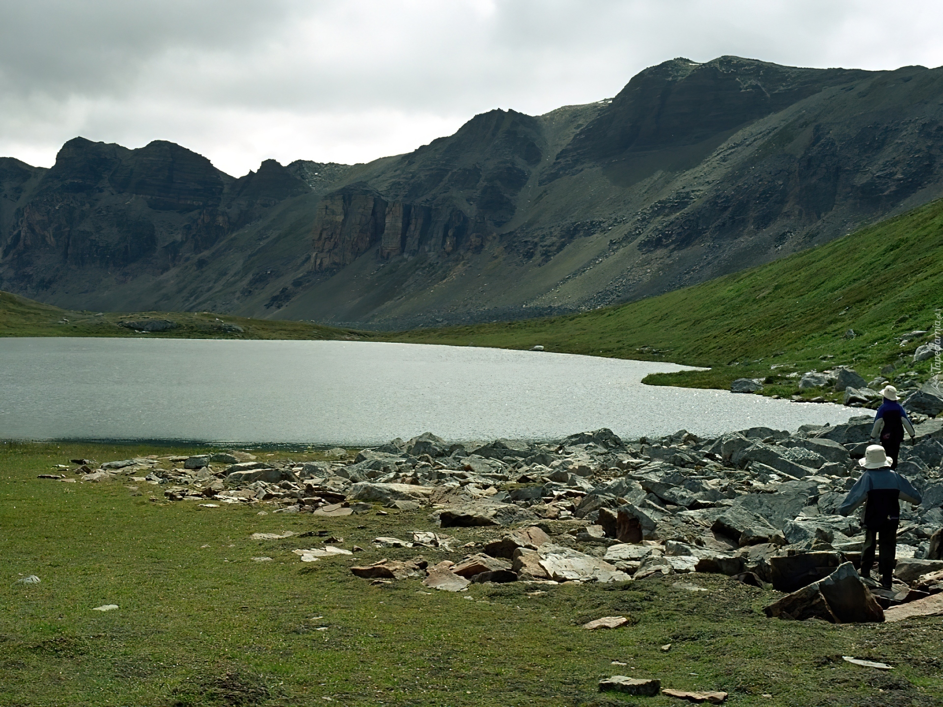 Edytor tapety: Góry, Kamienie, Jezioro,trawa,zielona