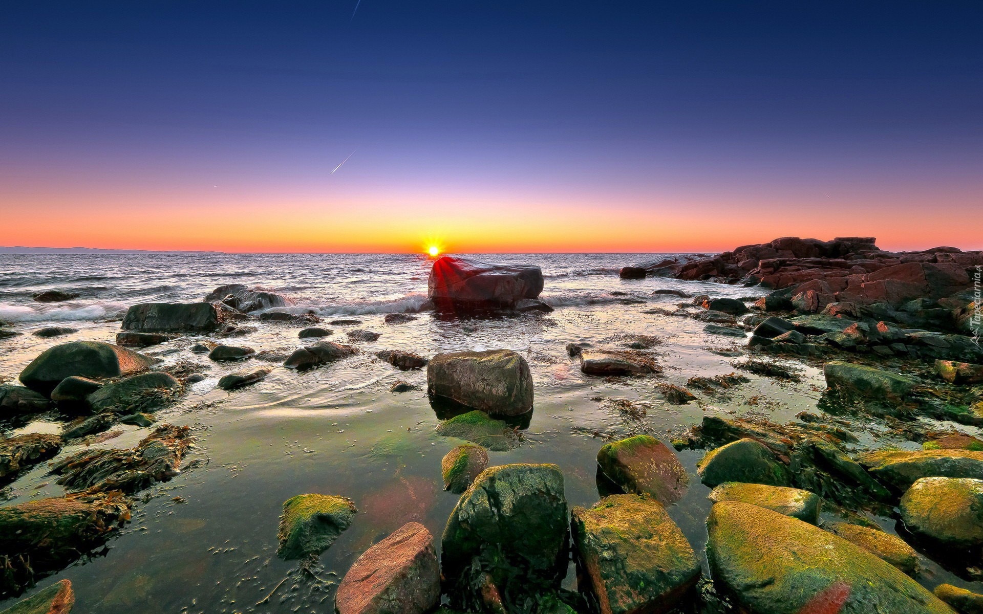 Edytor tapety: Kamienie, Morze, Zachód, Słońca