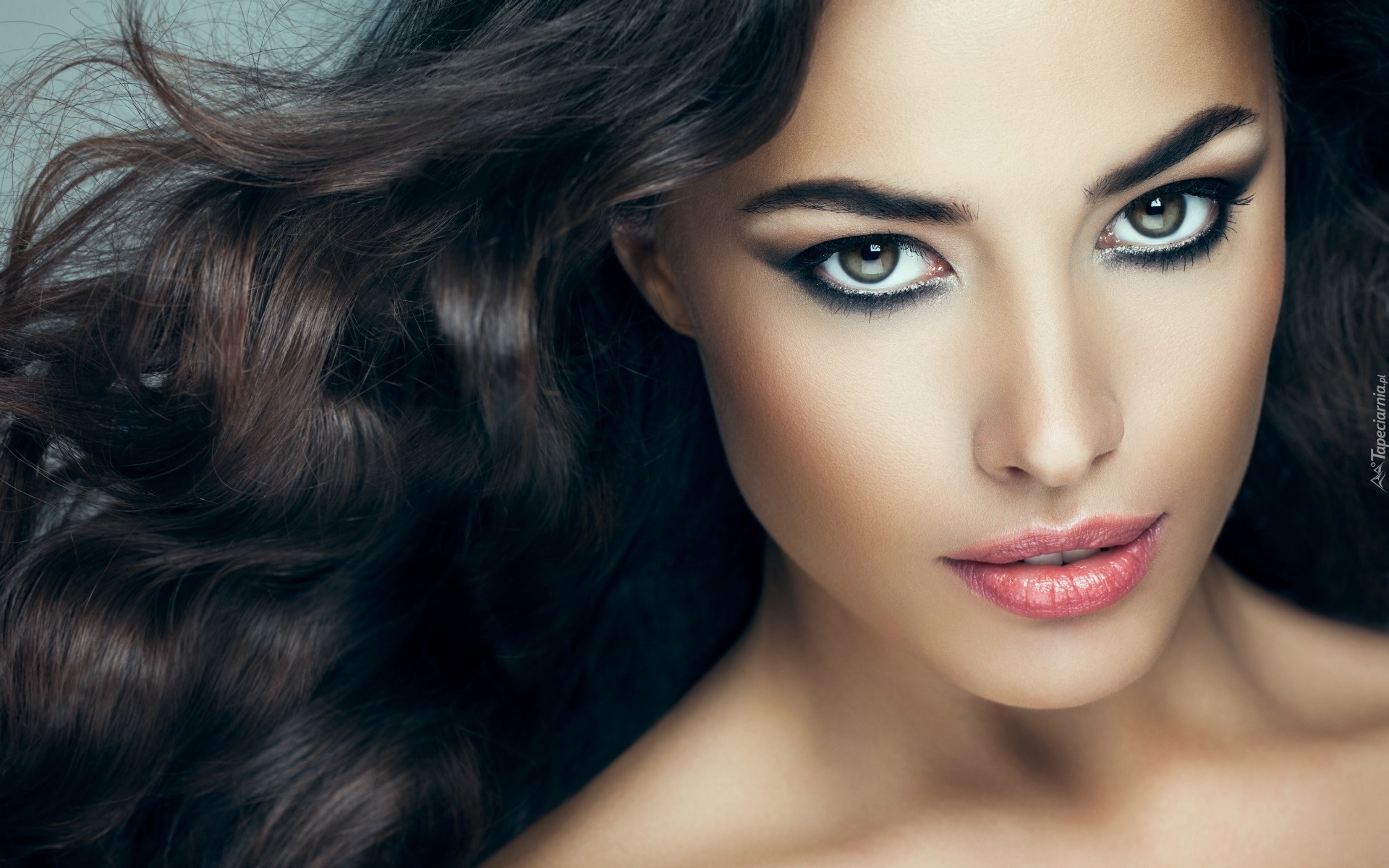 Edytor tapety: Piękna, Brunetka, Makijaż