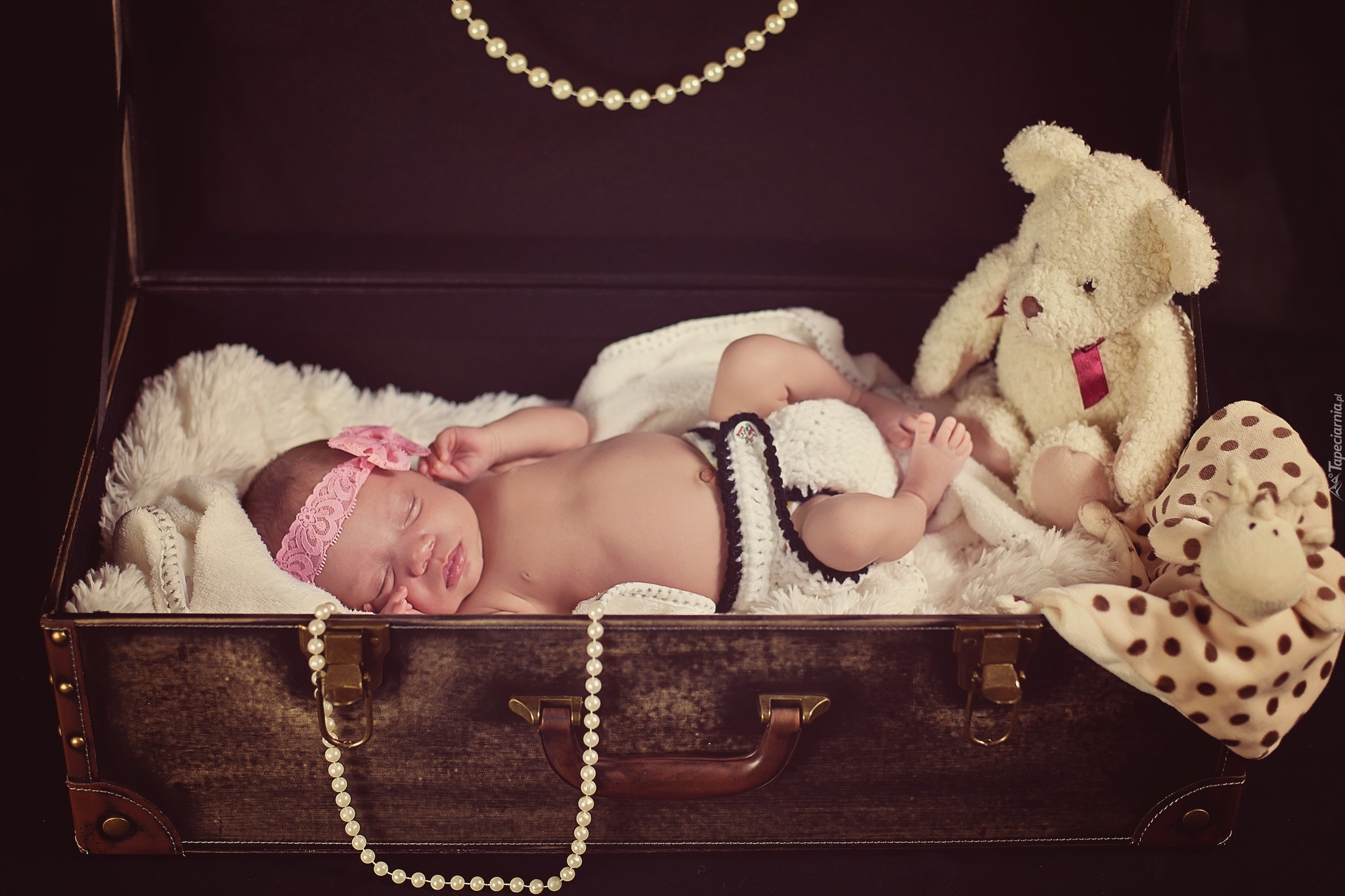 Edytor tapety: Mała, Dziewczynka, Kufer, Pluszak