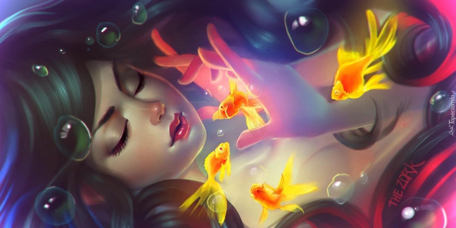Edytor tapety: Dziewczyna, Rybki, Długie, Włosy