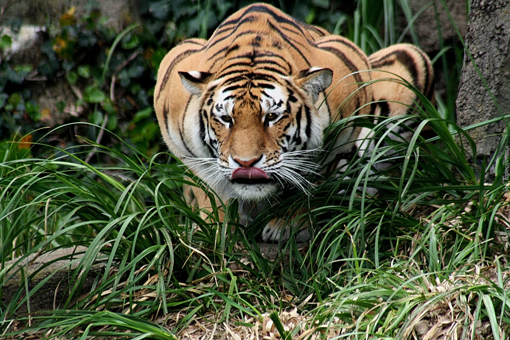 Edytor tapety: Tygrys, Trawa, Język