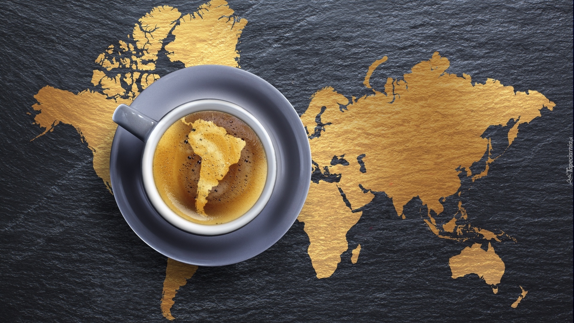 Edytor tapety: Filiżanka, Kawy, Mapa