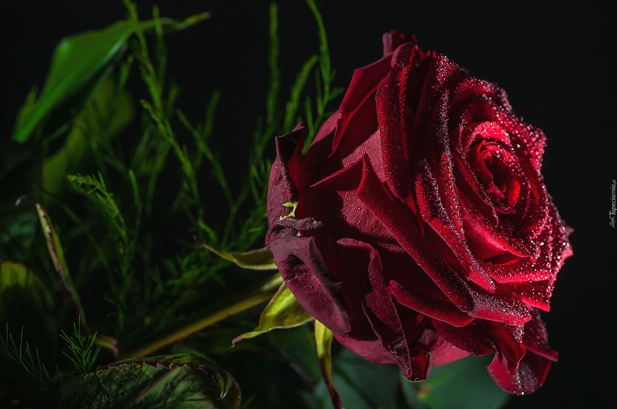Edytor tapety: Bordowa, Róża, Krople, Rosy