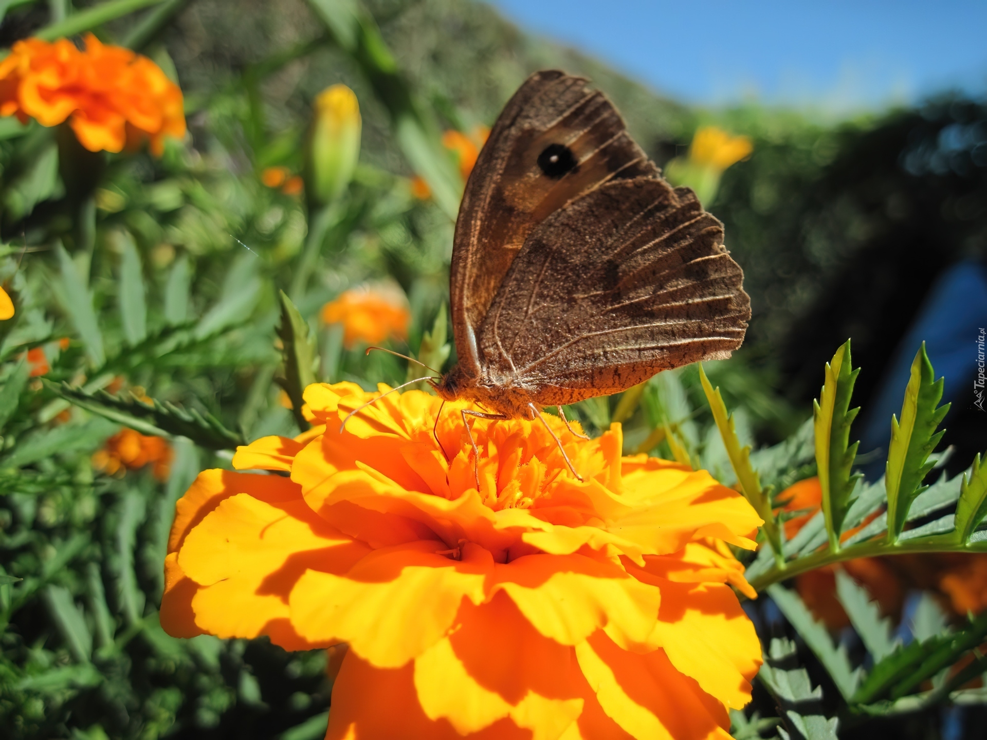 Edytor tapety: Kwiaty, Aksamitki, Motyl