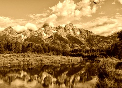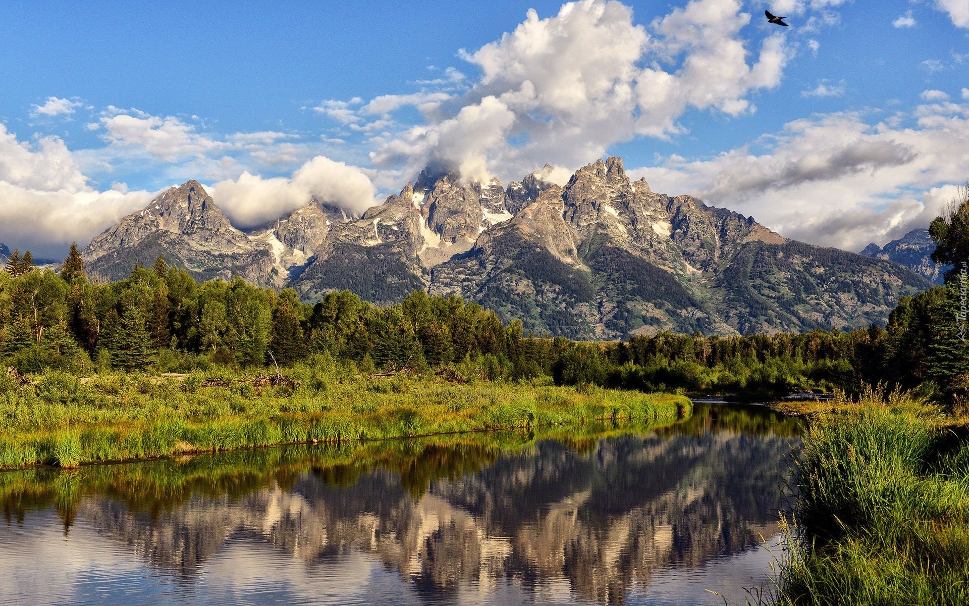 Edytor tapety: Góry, Rzeka, Lasy, Ptak