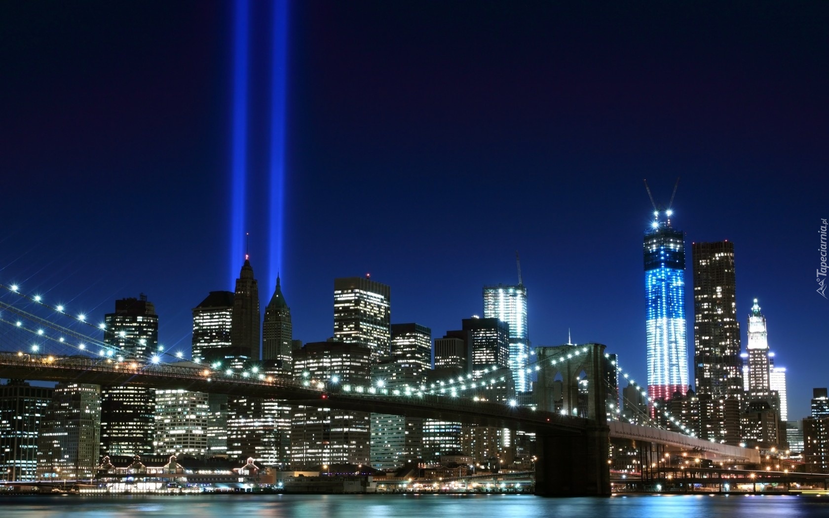Edytor tapety: Manhattan, Most Brookliński, Reflektory, Noc