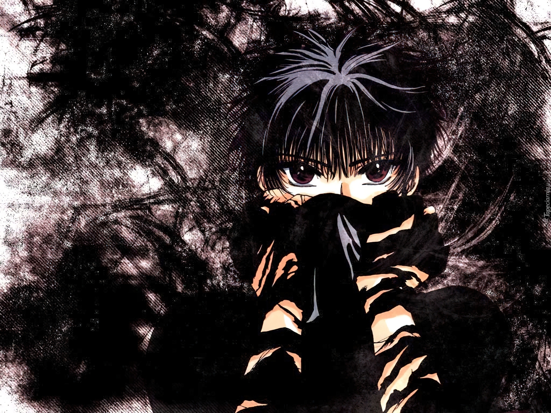 Edytor tapety: Tokyo Babylon, siwe pasma, zasłonięta twarz