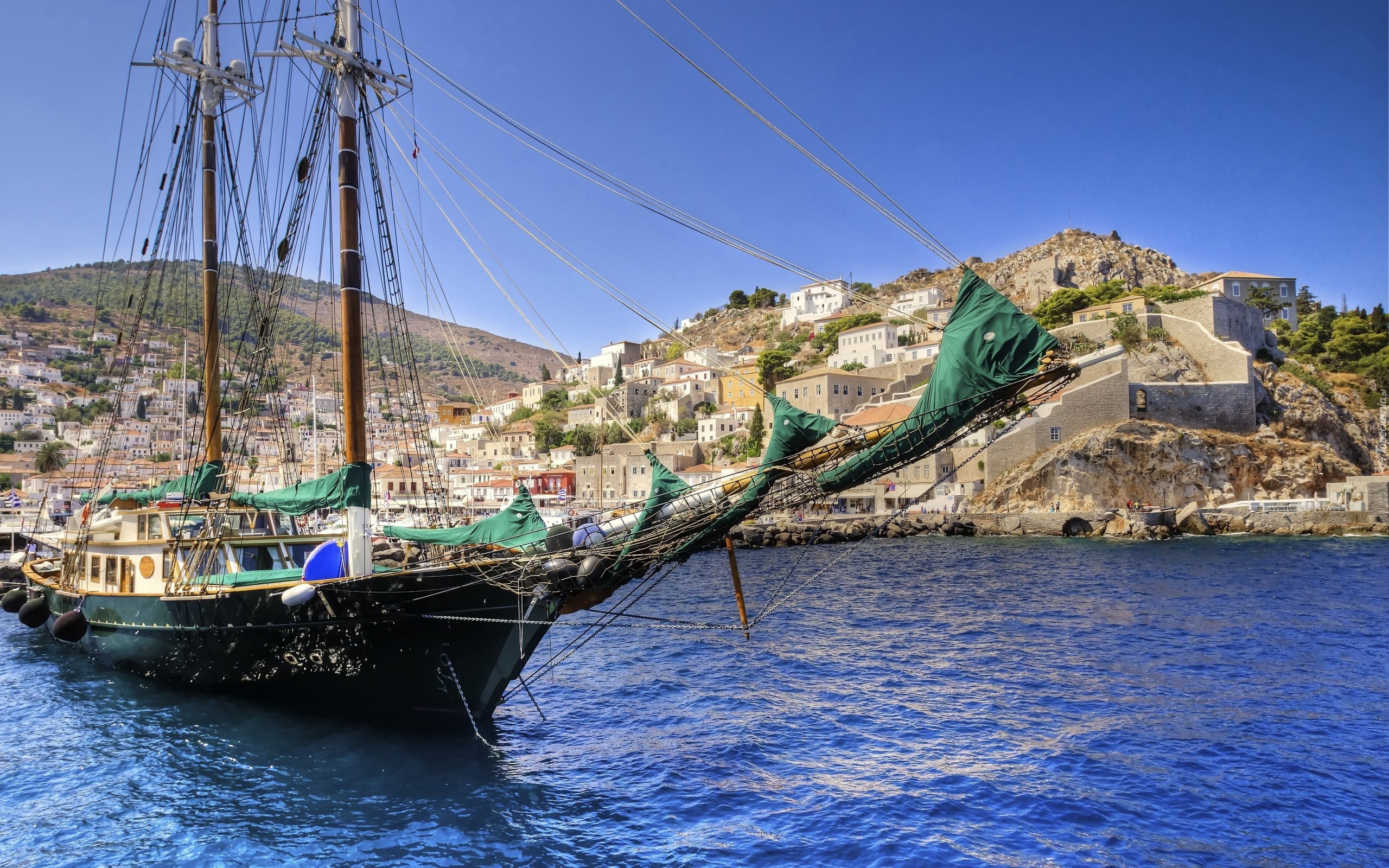 Edytor tapety: Żaglowiec, Morze, Wyspa, Grecja