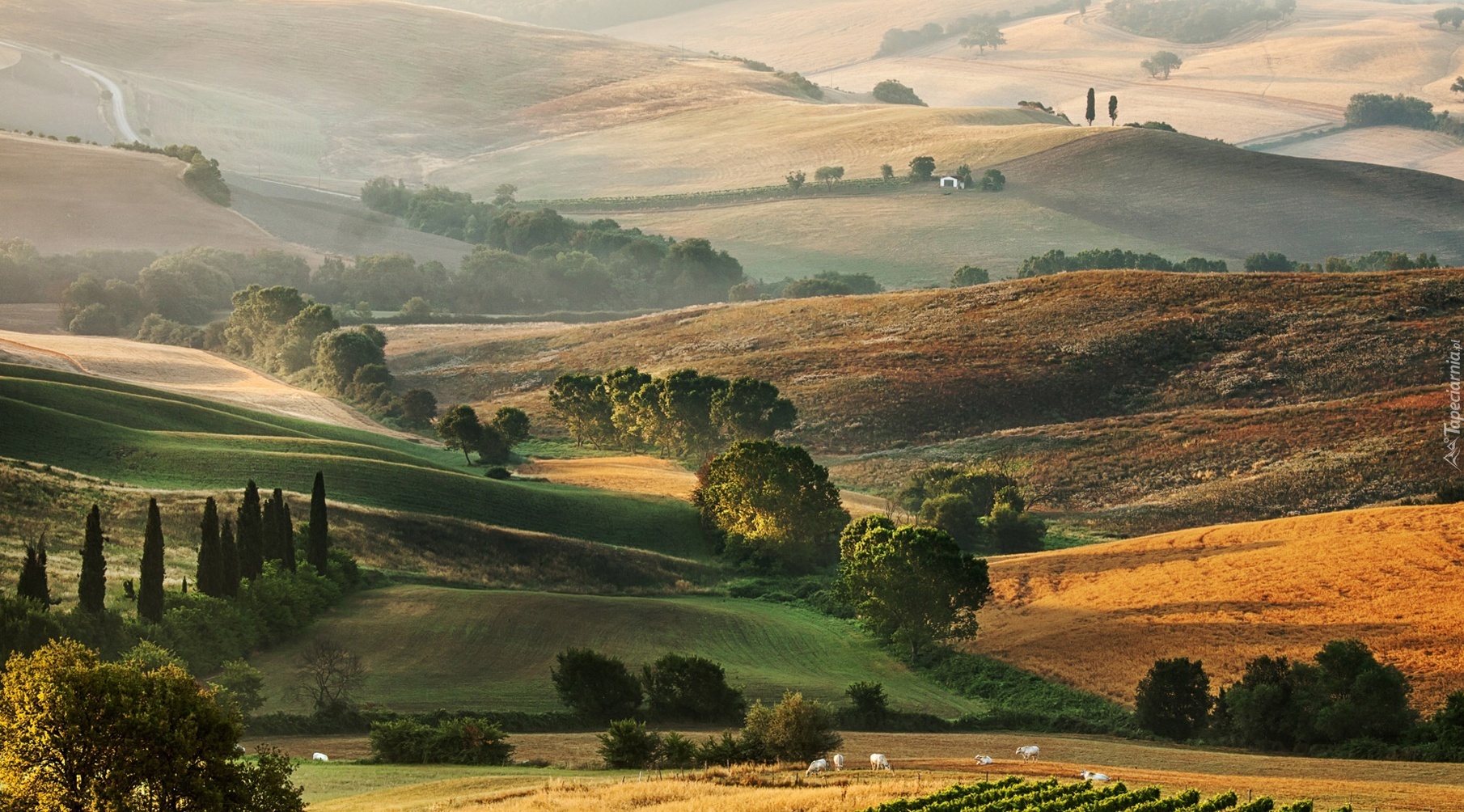Edytor tapety: Pola, Wieś, Pagórki