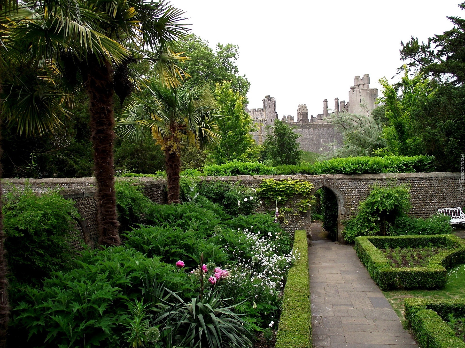 Edytor tapety: Zamek Arundel, Anglia, Hrabstwo West Sussex, Drzewa, Kwiaty Ogród