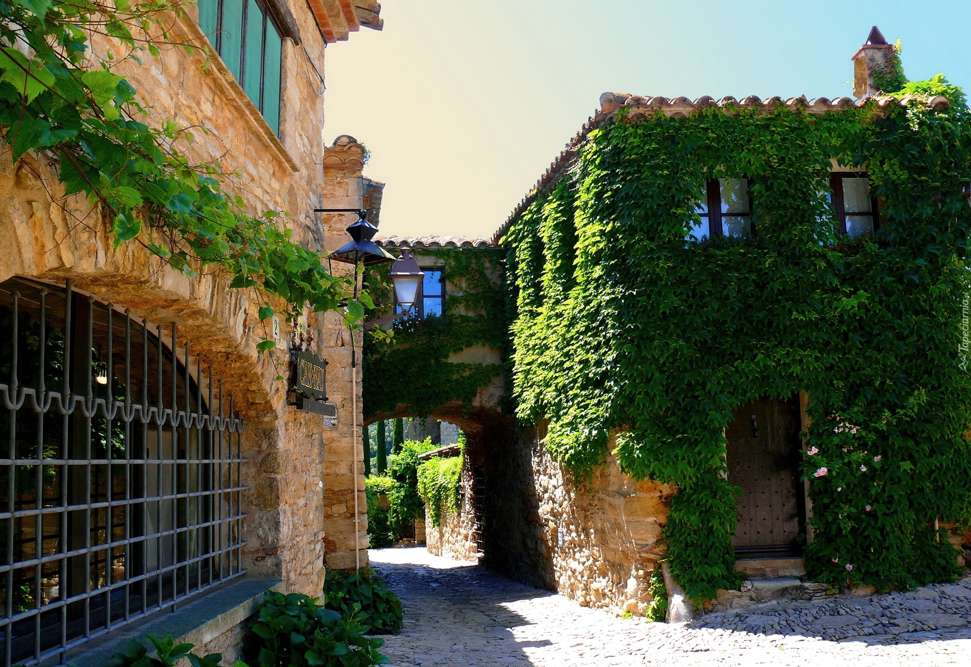 Edytor tapety: Uliczka, Domki, Winorośla