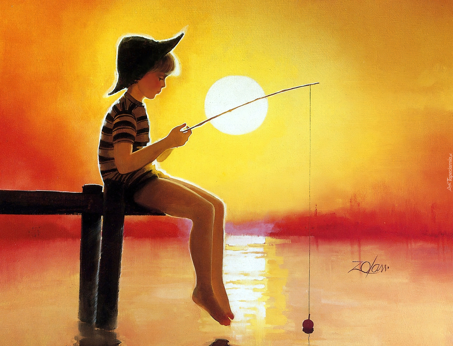 Edytor tapety: Obraz, Donald Zolan, Chłopczyk, Wędka