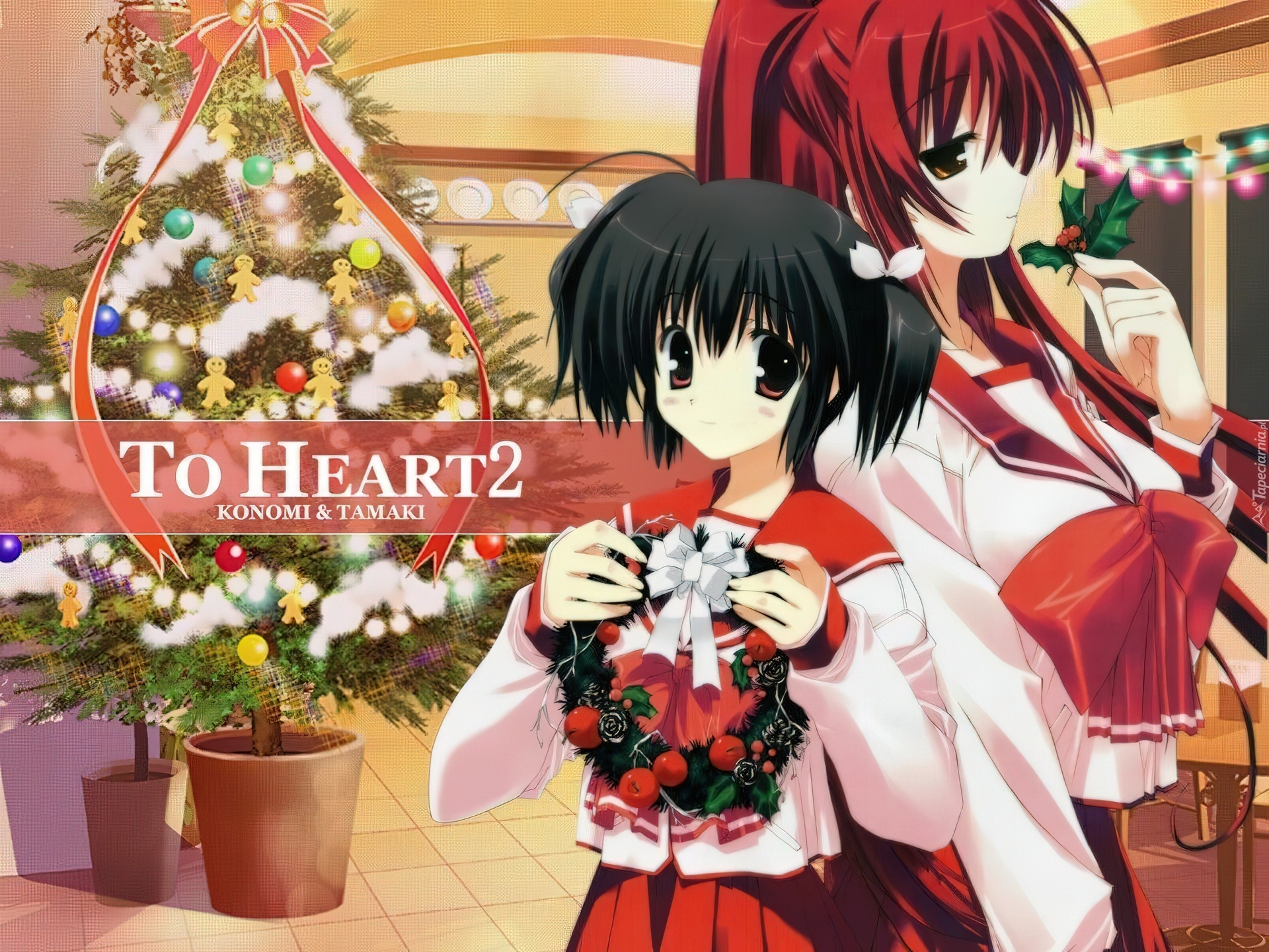 Edytor tapety: To Heart, choinka, wianek