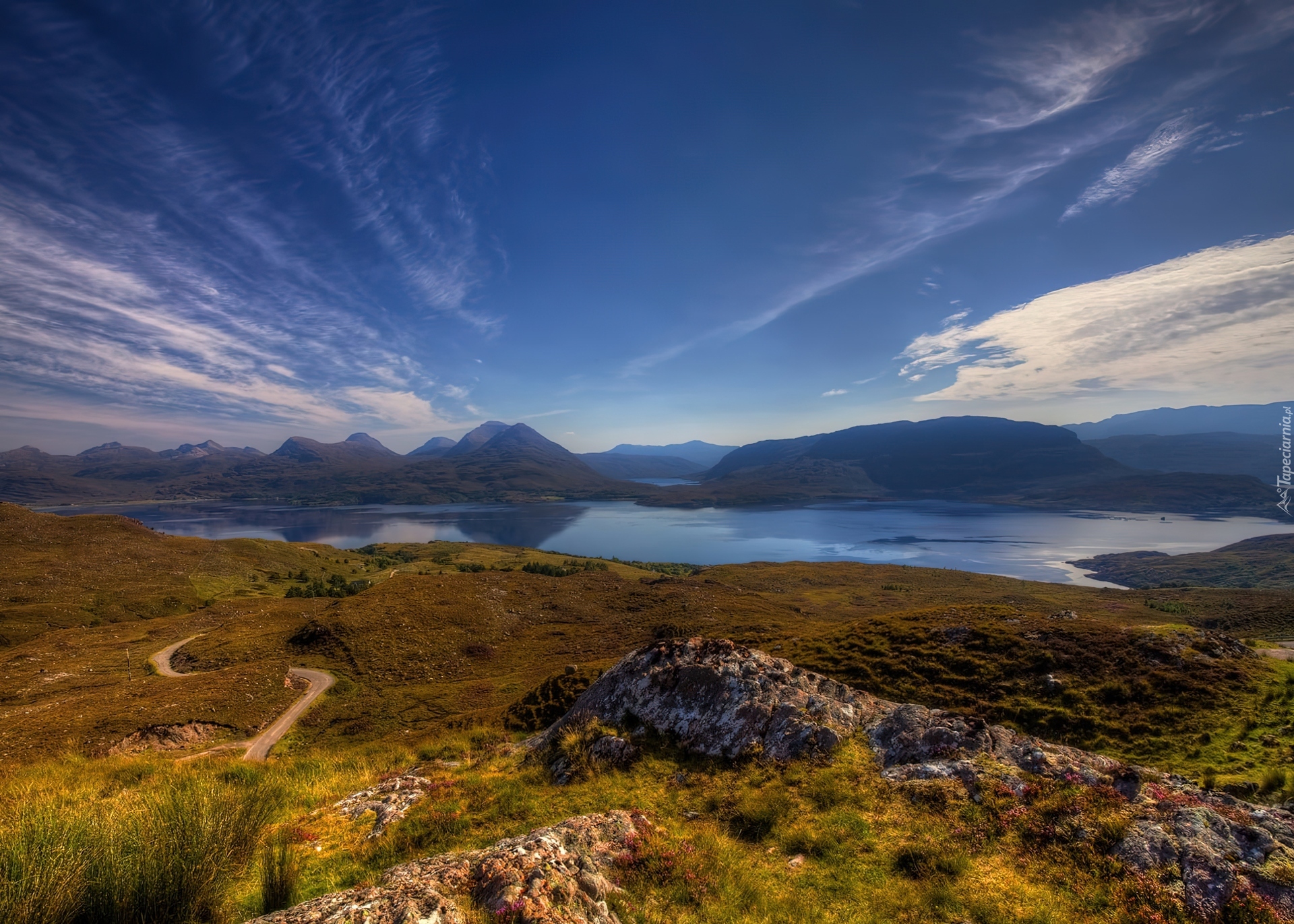 Edytor tapety: Jezioro, Góry, Łąki, Droga
