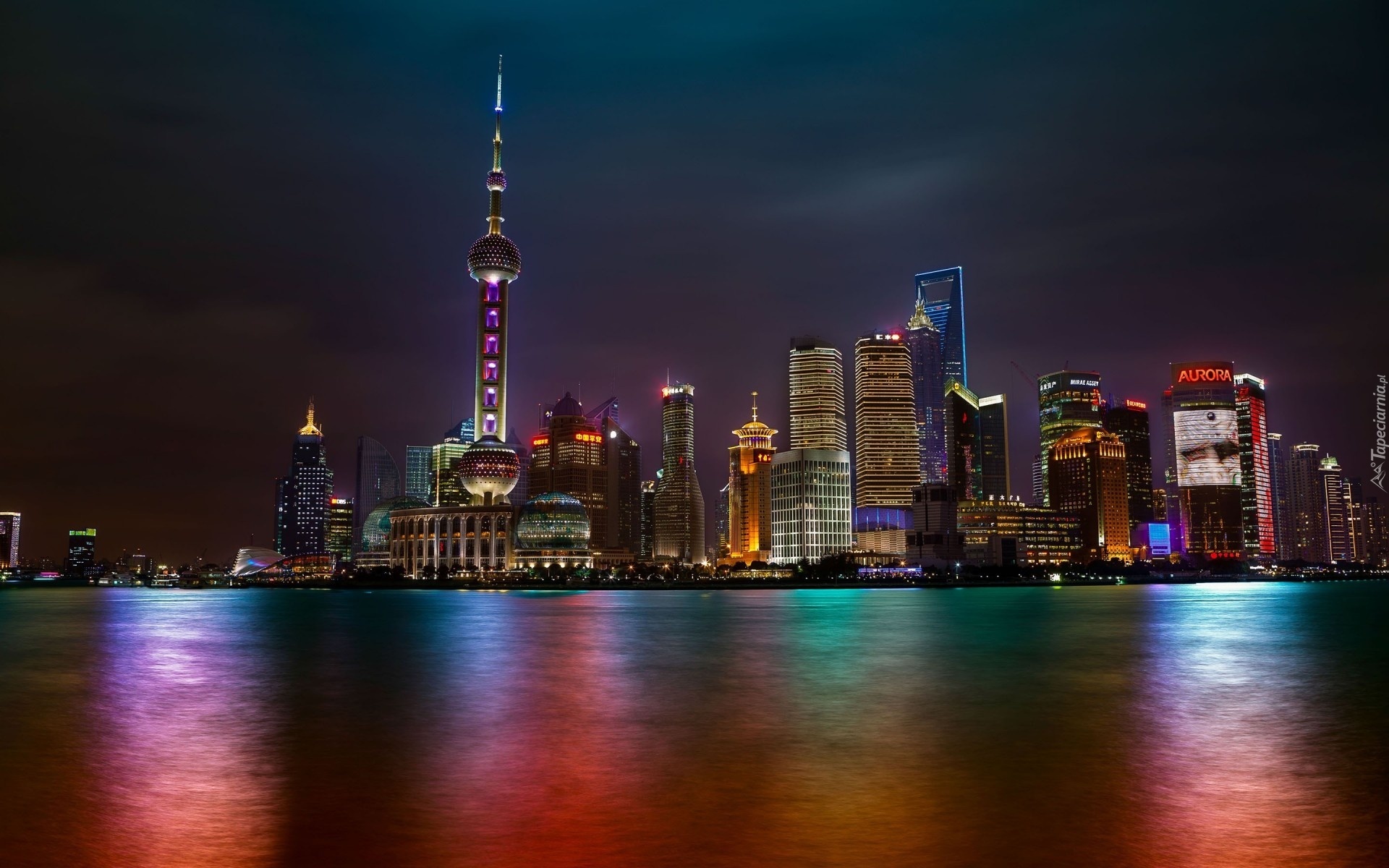 Edytor tapety: Miasto, Noc, Szanghaj, Chiny