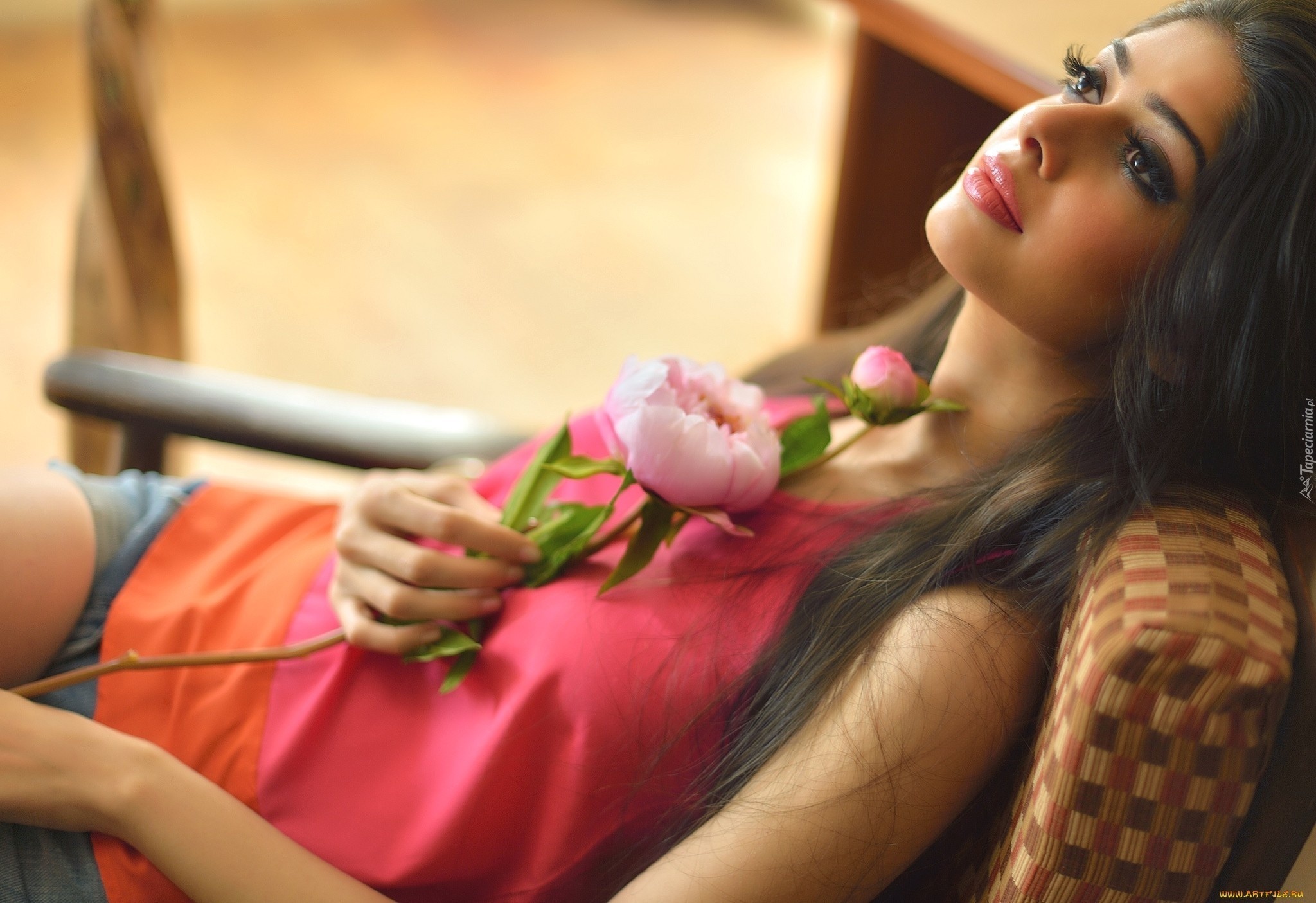 Edytor tapety: Dziewczyna, Marzycielka, Piwonia