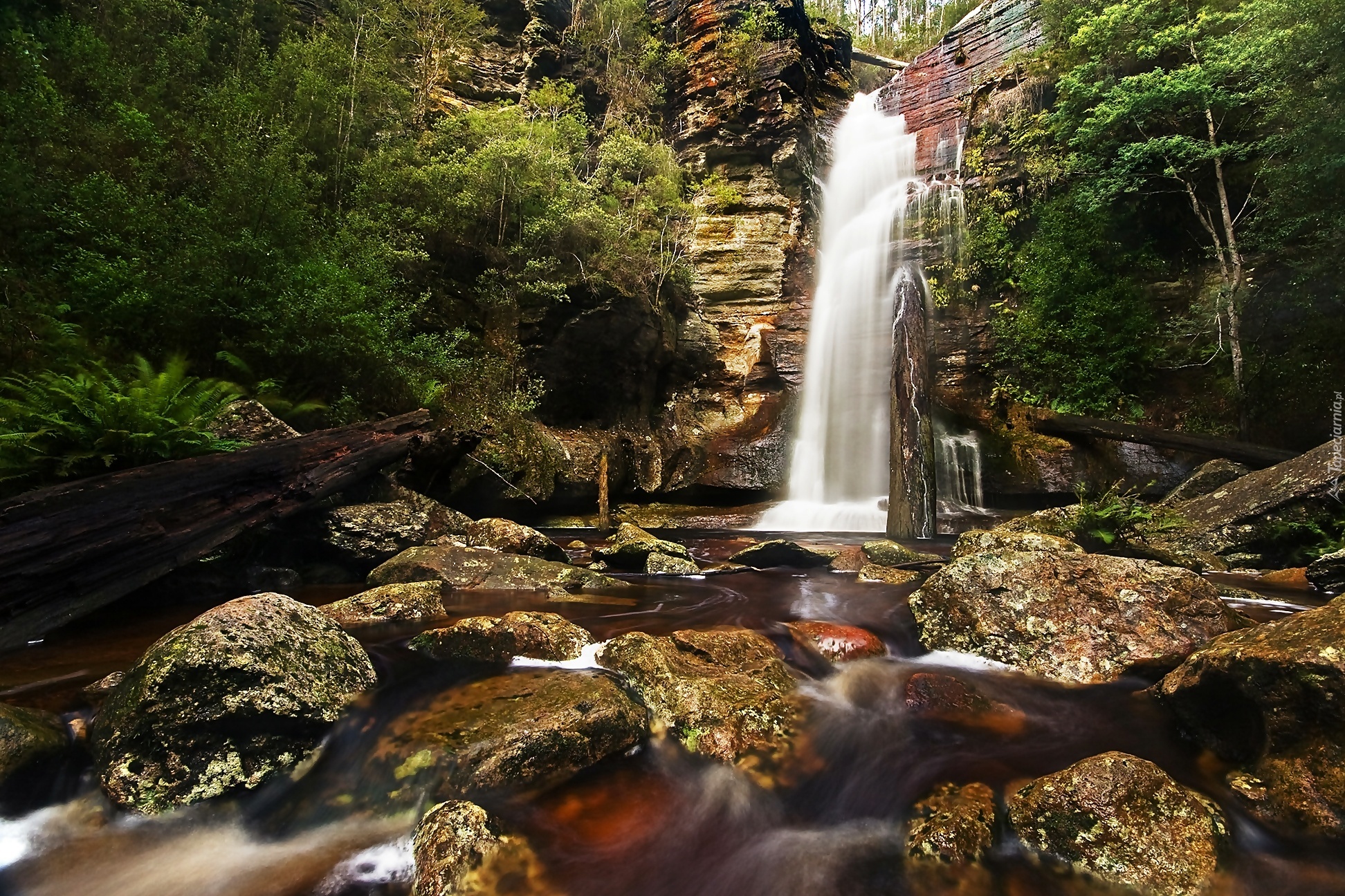 Edytor tapety: Skały, Las, Wodospad