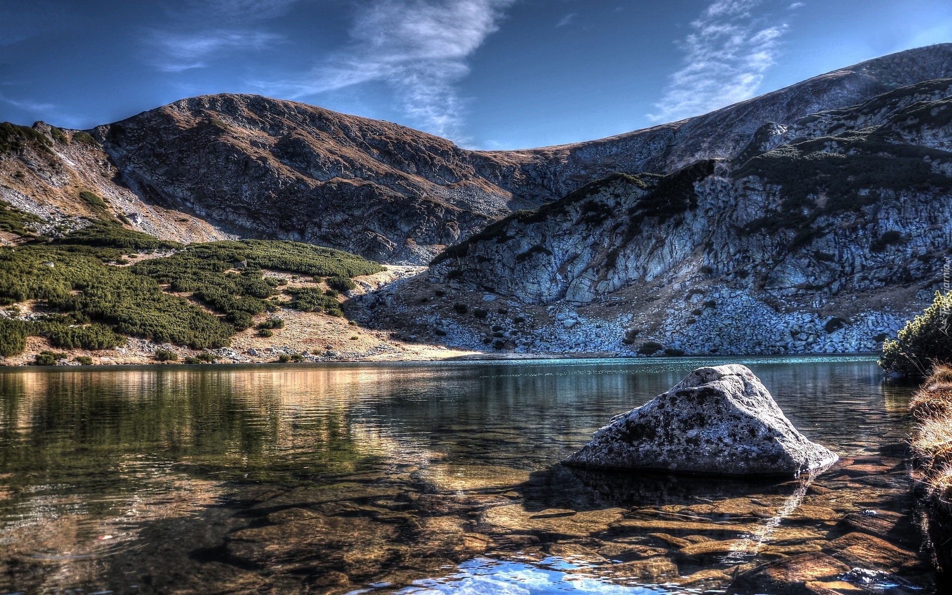 Edytor tapety: Góry, Jezioro, Kamienie