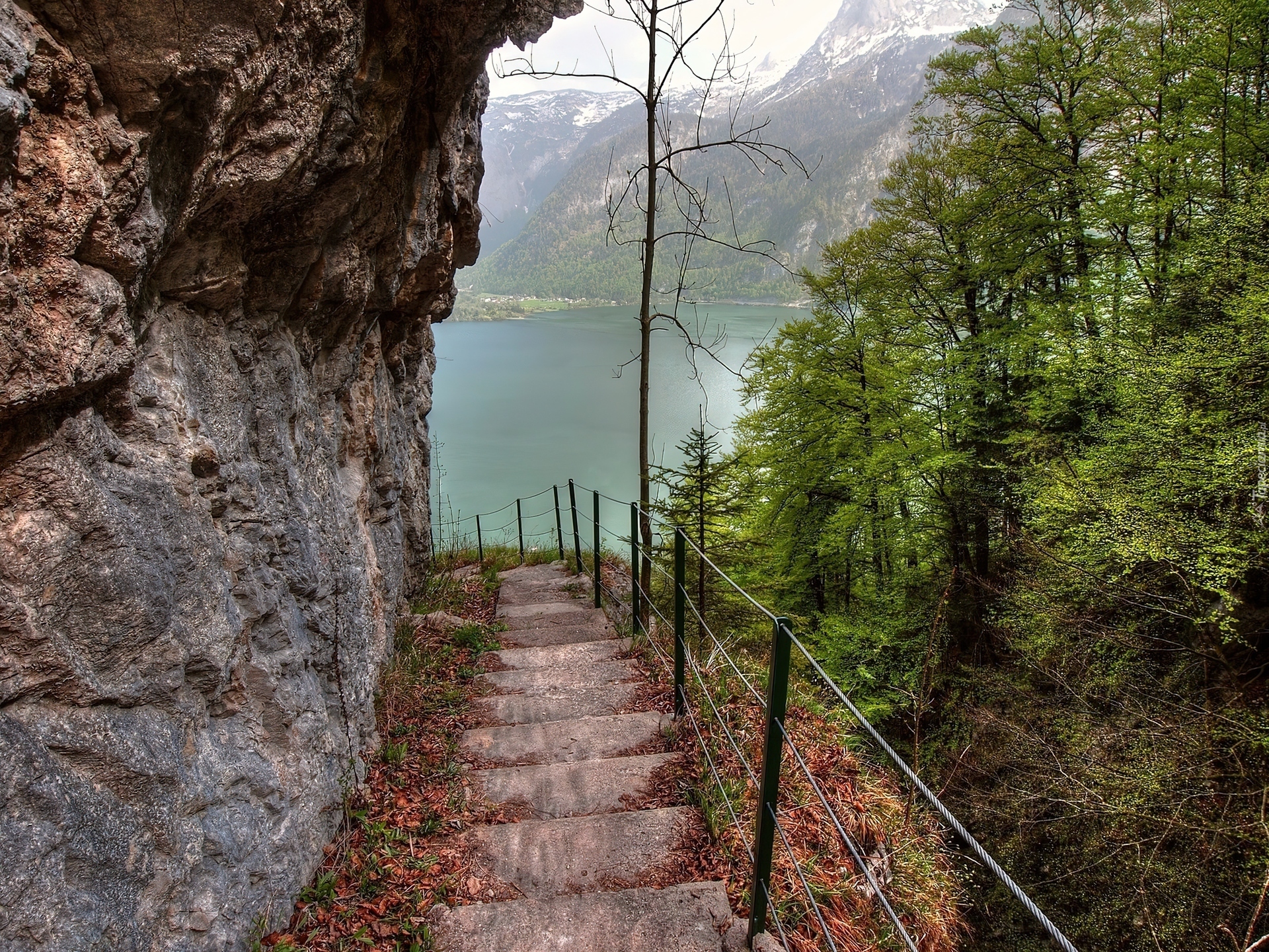 Edytor tapety: Góry, Jezioro, Skała, Schody, Zejście