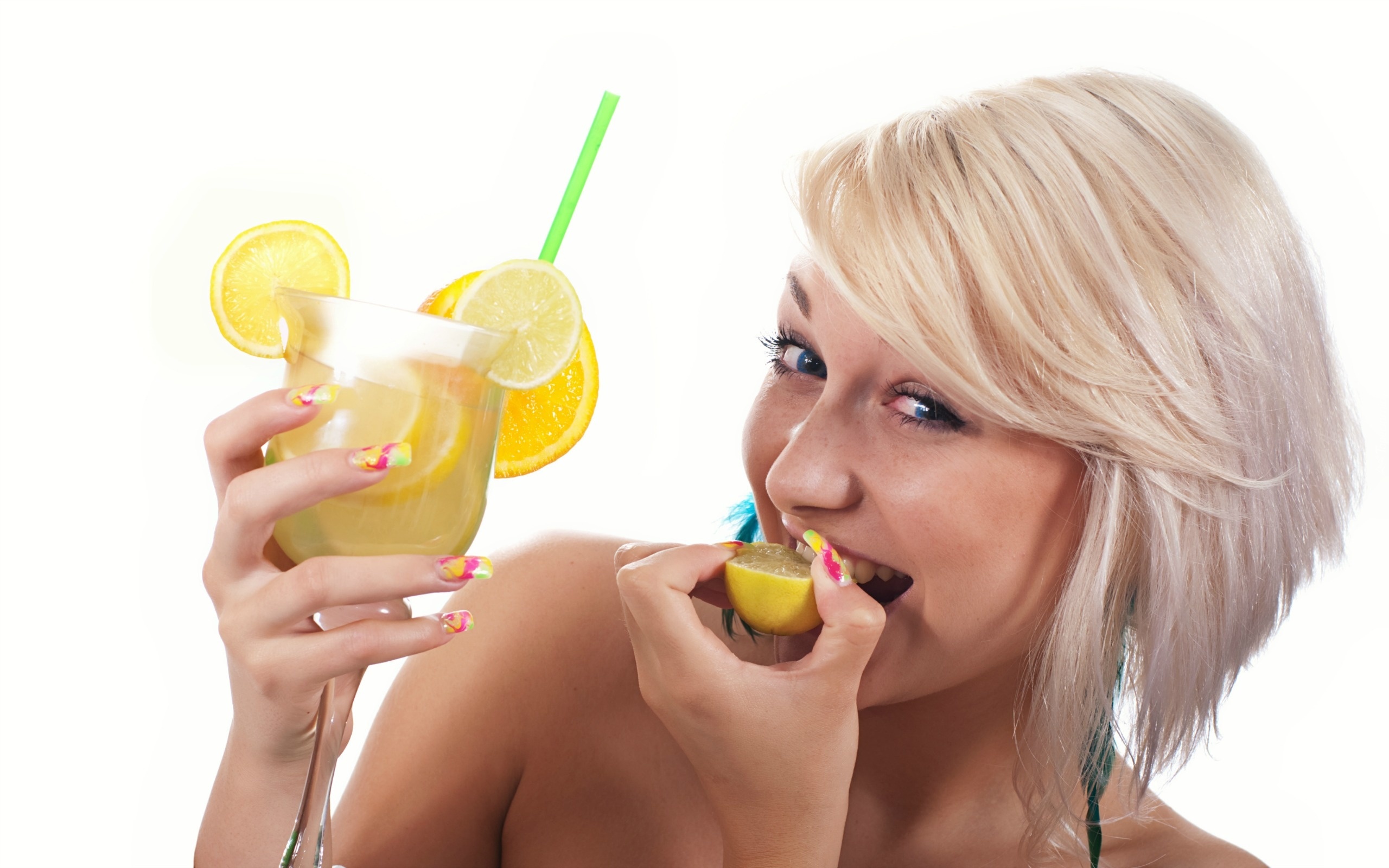 Edytor tapety: Uśmiechnięta, Blondynka, Koktajl