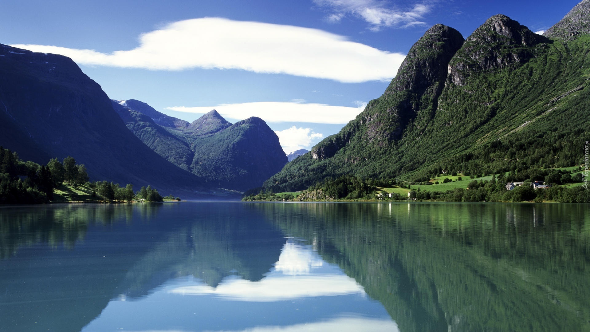 Edytor tapety: Jezioro, Oldenvatnet, Góry, Las