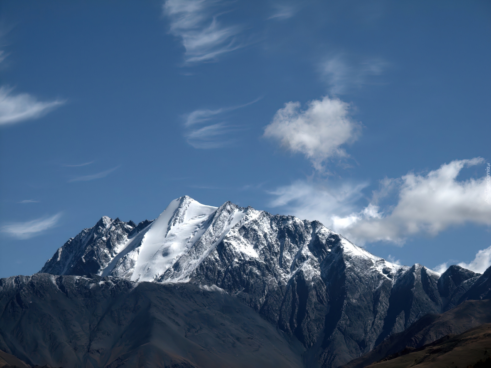 Edytor tapety: Góry, Ośnieżone, Szczyty, Chmurki