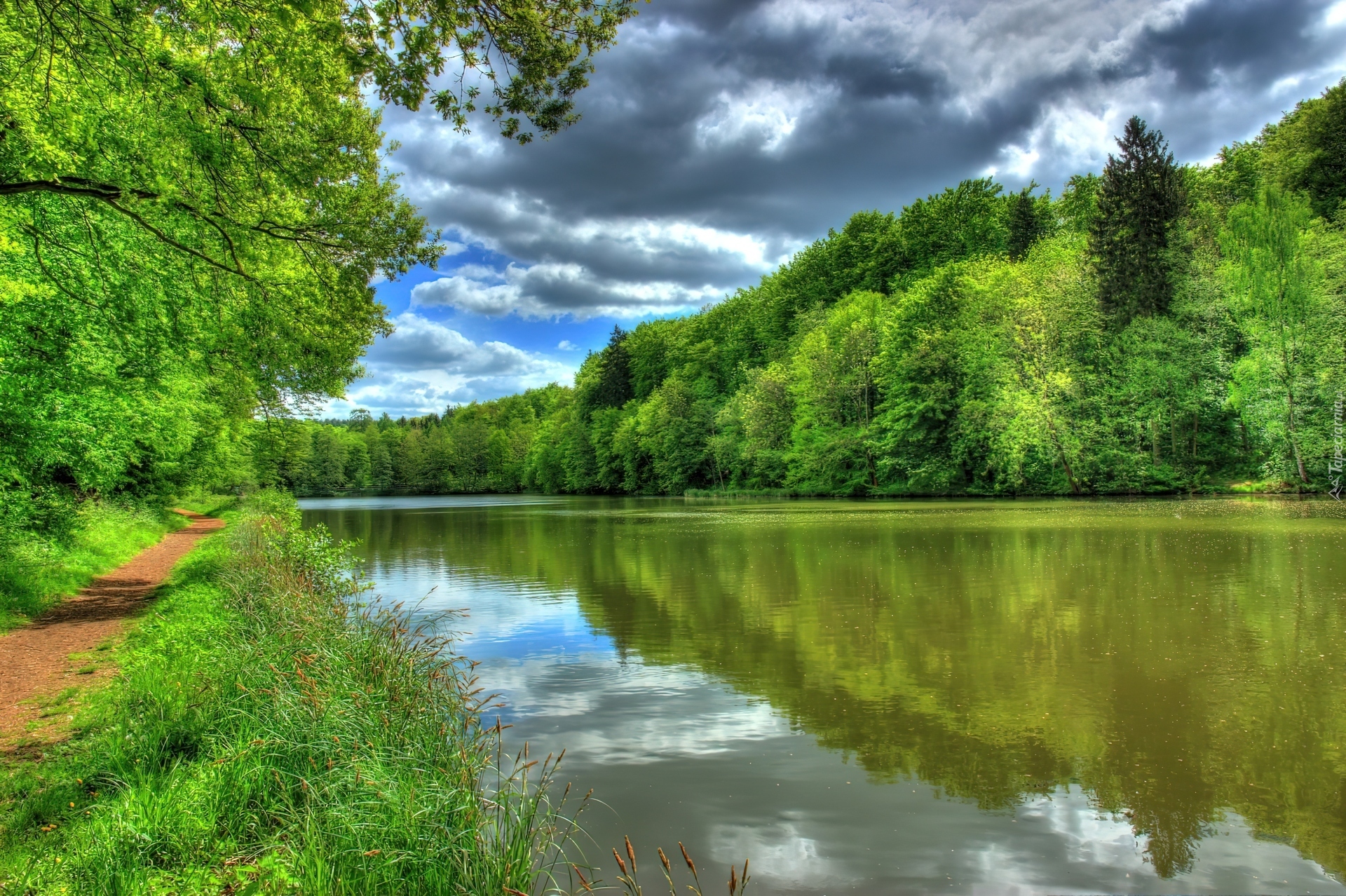 Edytor tapety: Las, Rzeka, Droga, Chmury