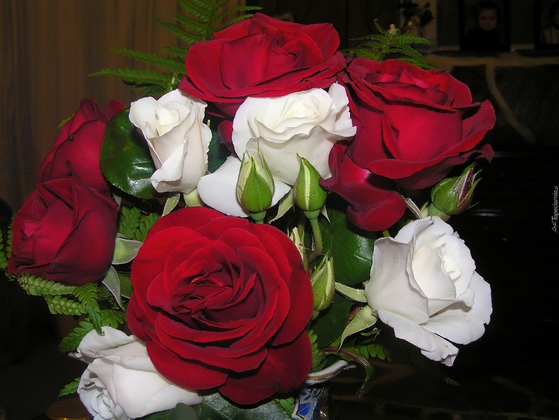 Edytor tapety: Bukiet, Czerwono, Białych, Róż