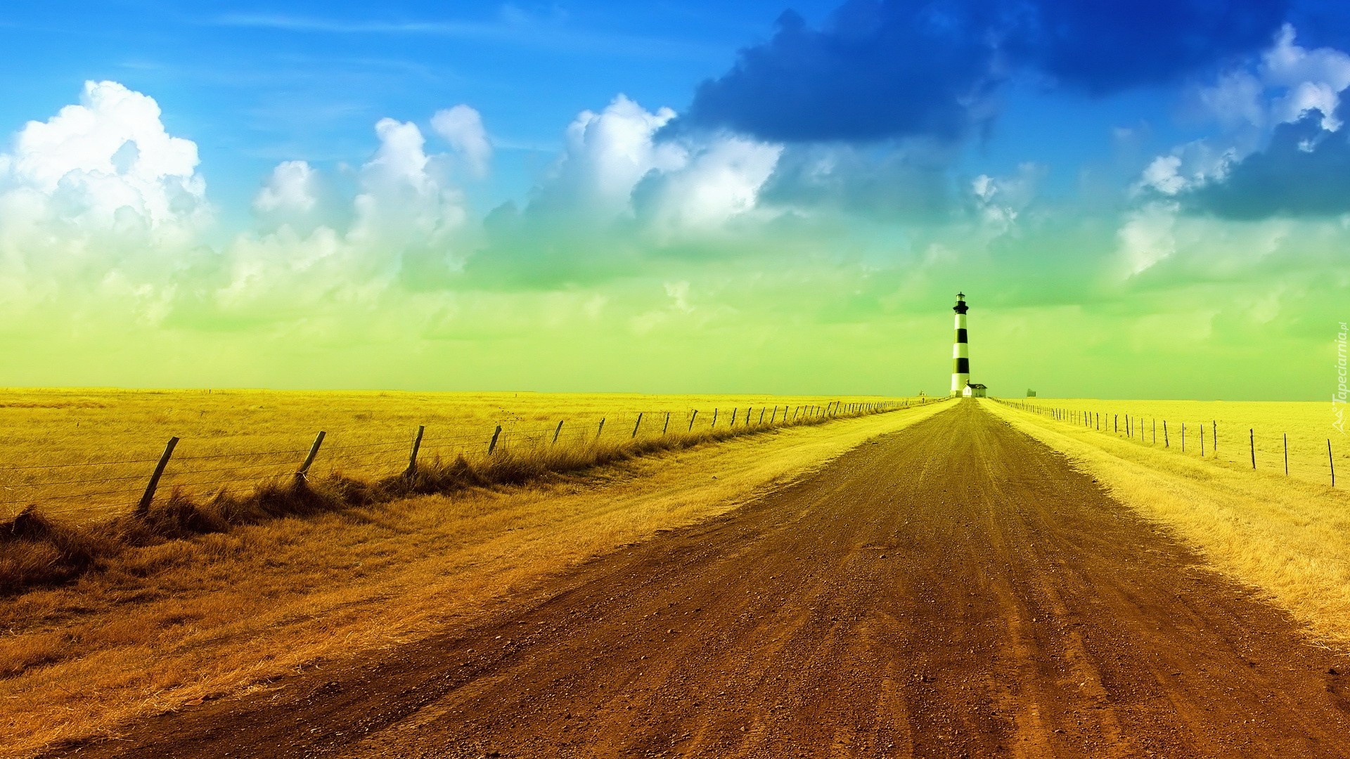 Edytor tapety: Droga, Pola, Latarnia, Morska, Chmury