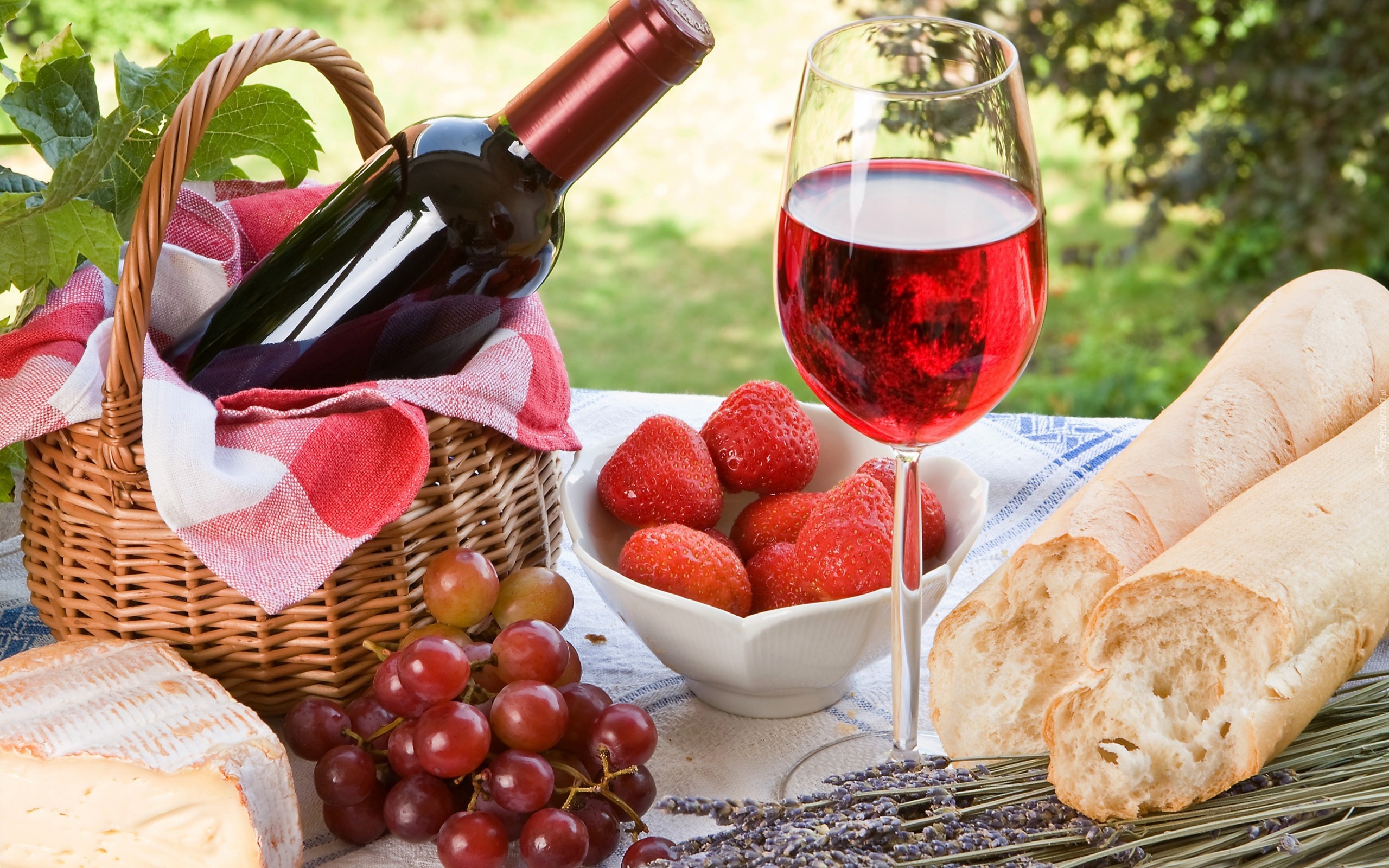 Edytor tapety: Wino, Owoce, Łąka, Piknik