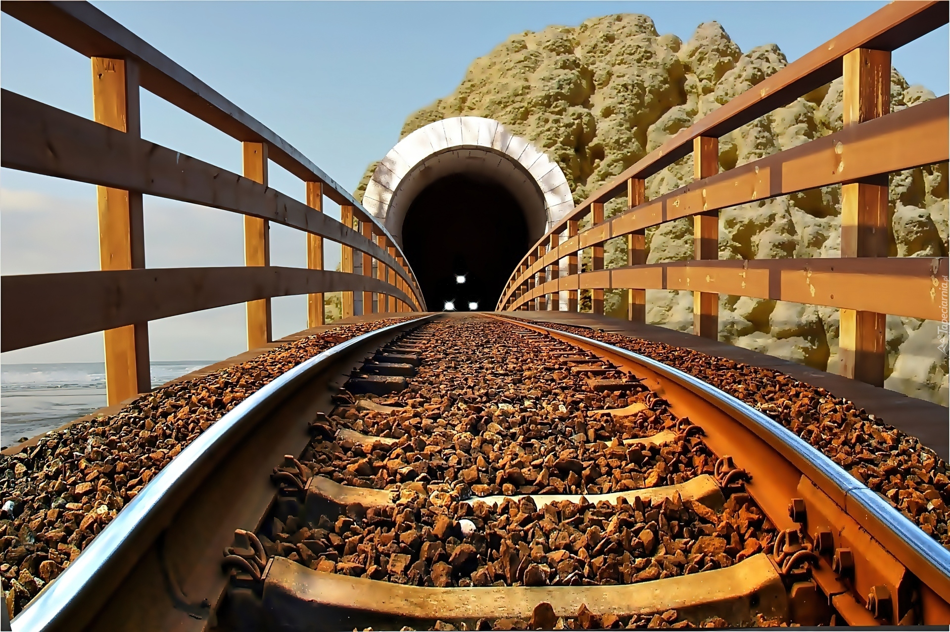 Edytor tapety: Góra, Tunel, Most, Tory