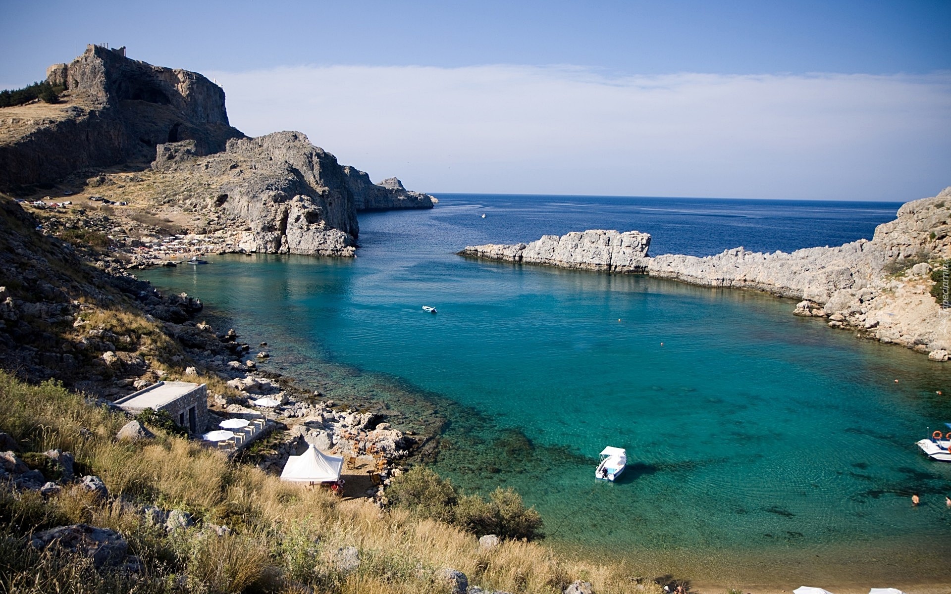 Edytor tapety: Morze, Skały, Zatoka, Wyspa, Rodos, Grecja