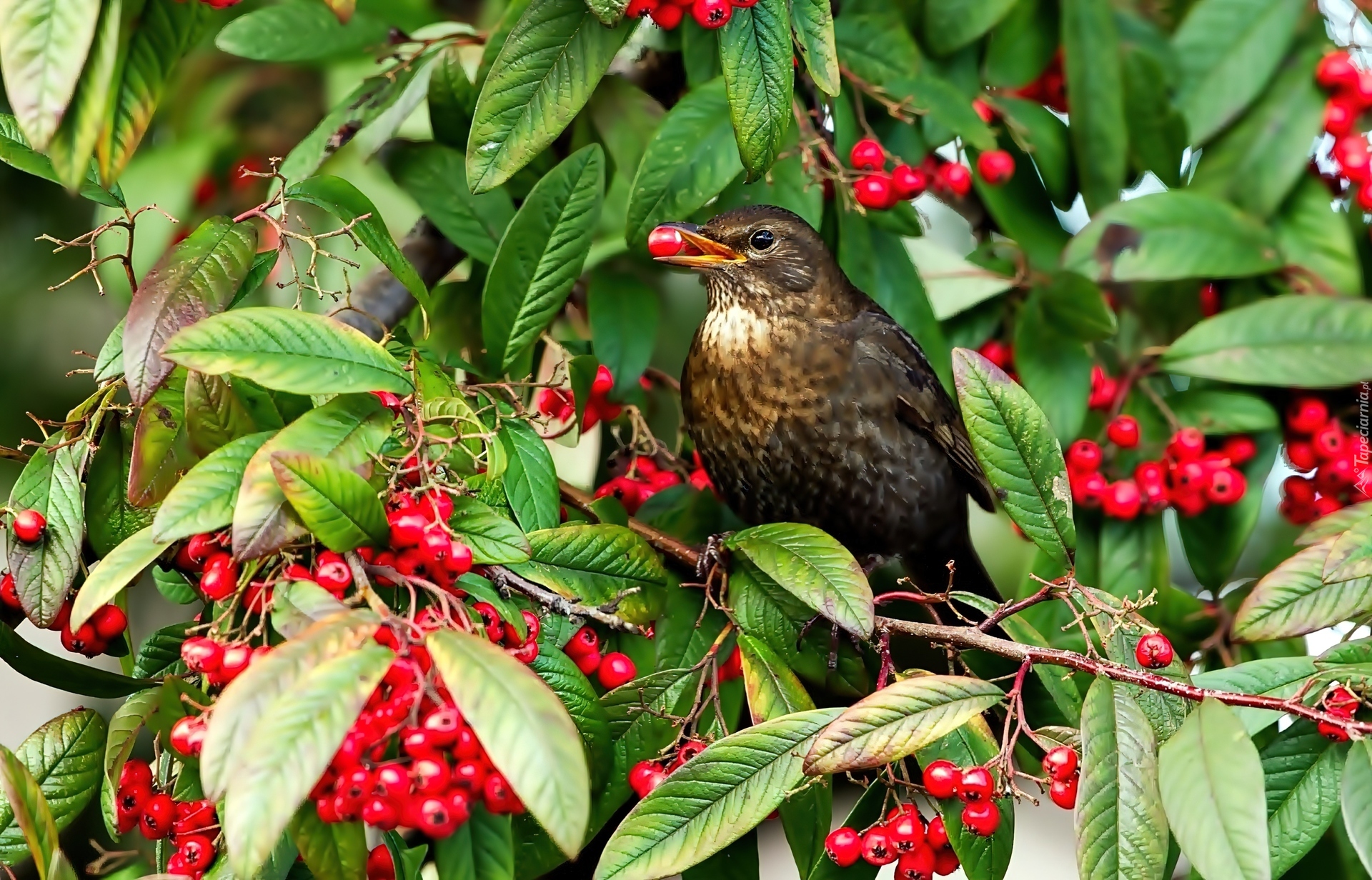 Edytor tapety: Drozd, Czerwone, Jagody, Kaliny, Sztywnolistnej