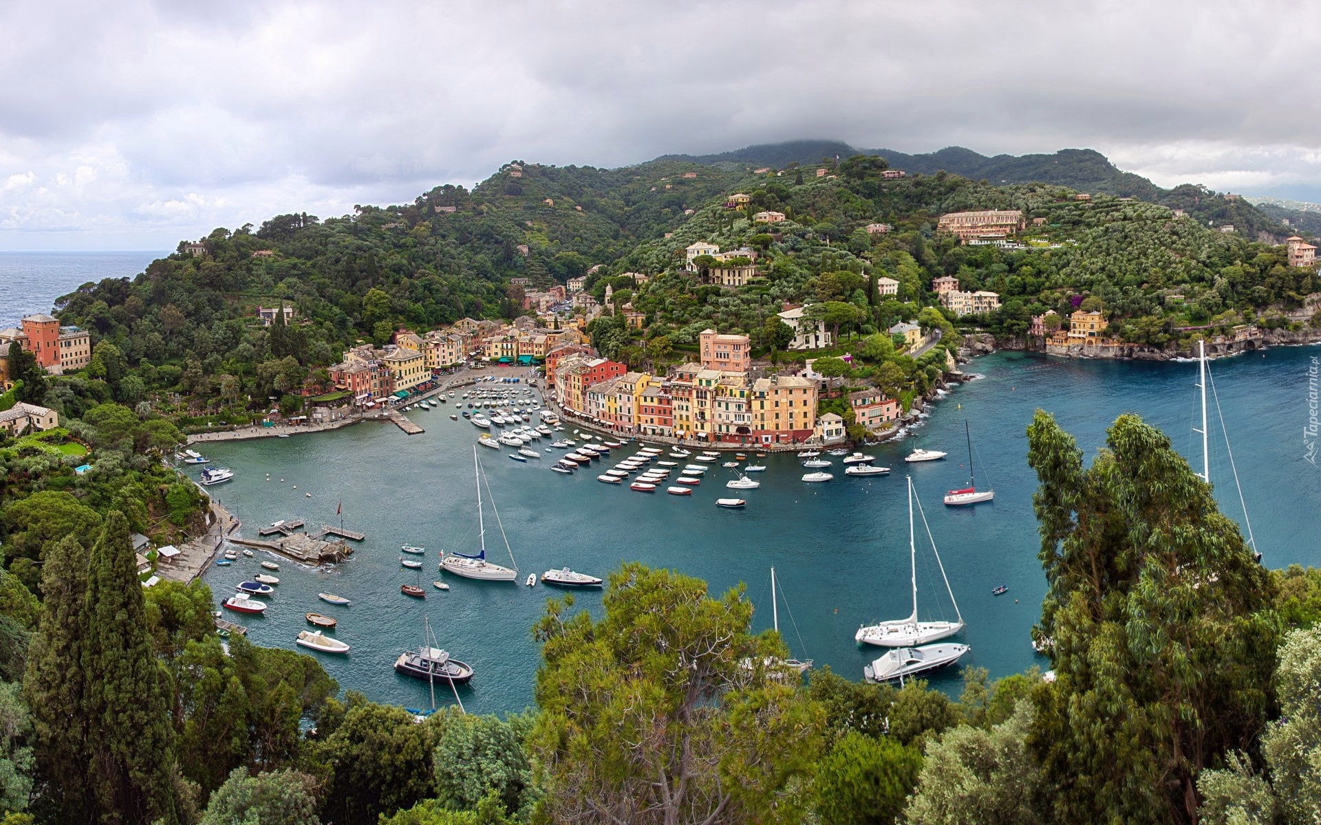 Edytor tapety: Góry, Morze, Zatoka, Domy, Jachty